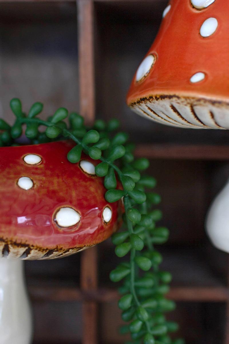 These toadstool wall hangers add pizazz wherever you put them. Pair them with their hanging partners for a multilayered look, or hang them anywhere you need a touch of fun-gi. Great for garden areas or for perking up porches.