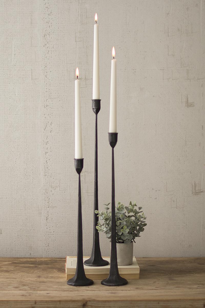Set Of Three Tall Cast Iron Taper Candle Holders