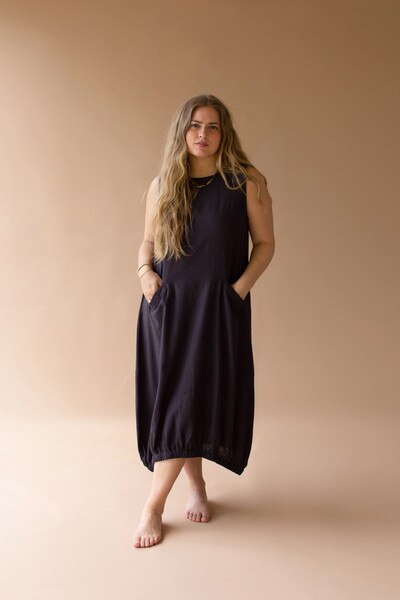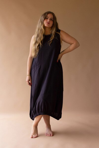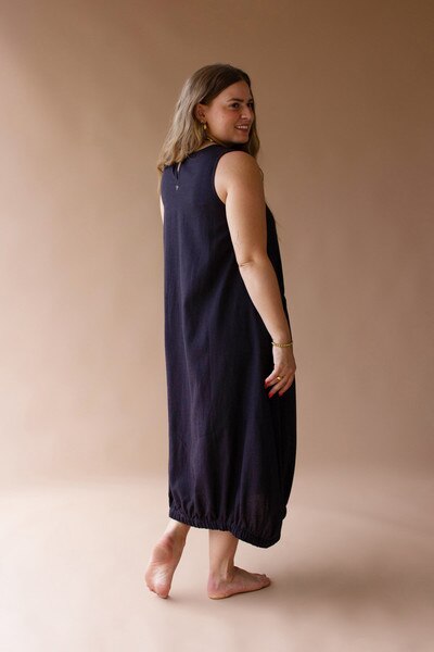 Sleeveless Dress With Elastic Bottom And Pockets Midnight