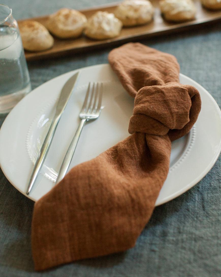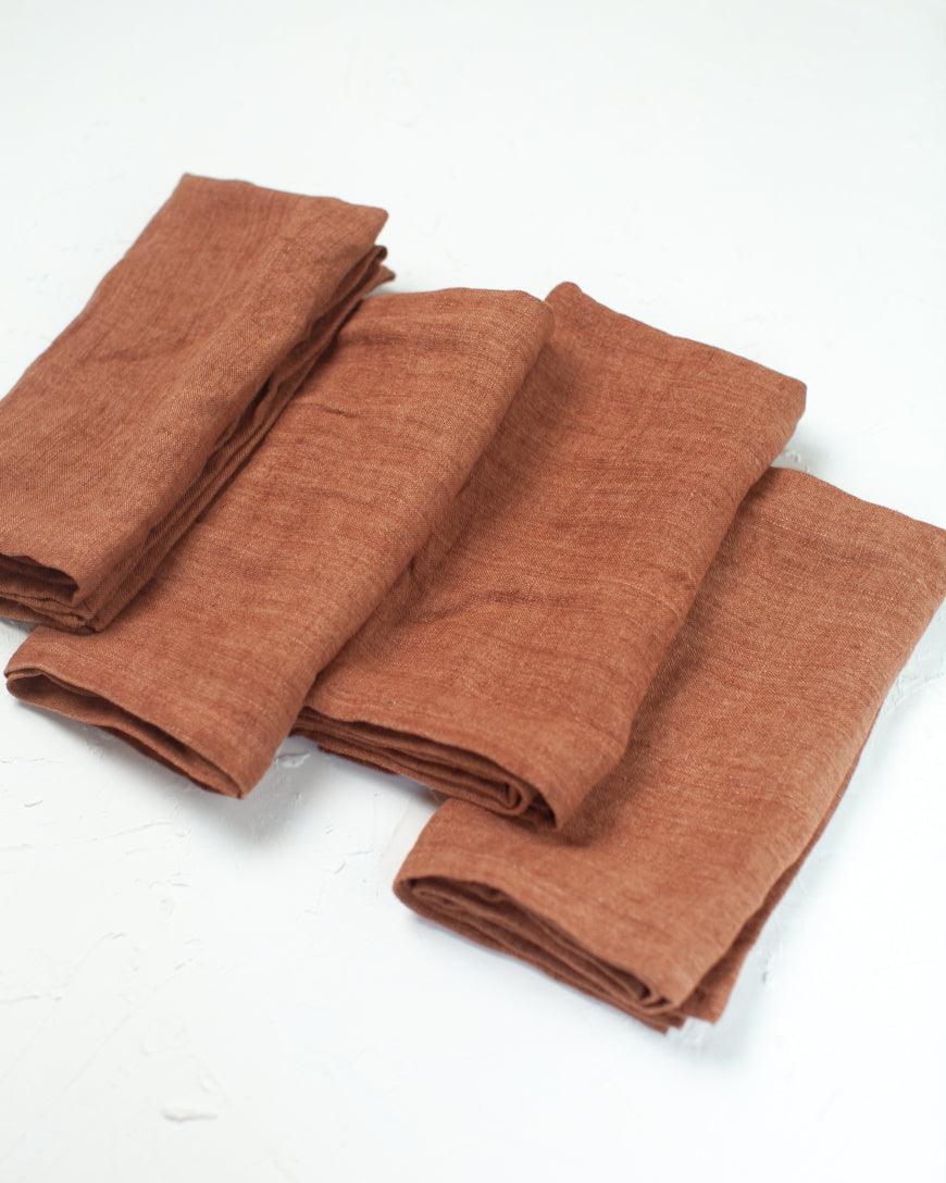 Stone Washed Linen Napkins, Terracotta - set of 4