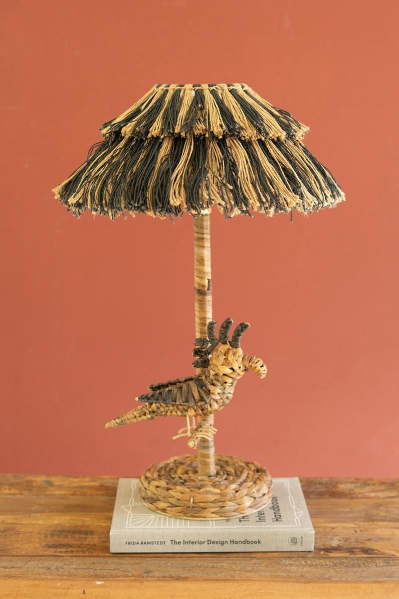 Table Lamp W Seagrass Bird Base & Black Natural Jute Shade