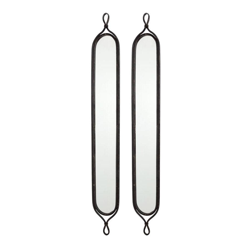 A set of French-inspired metal mirrors---vintage in feel and antique black in color.