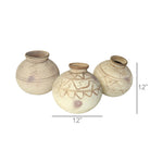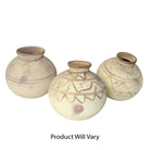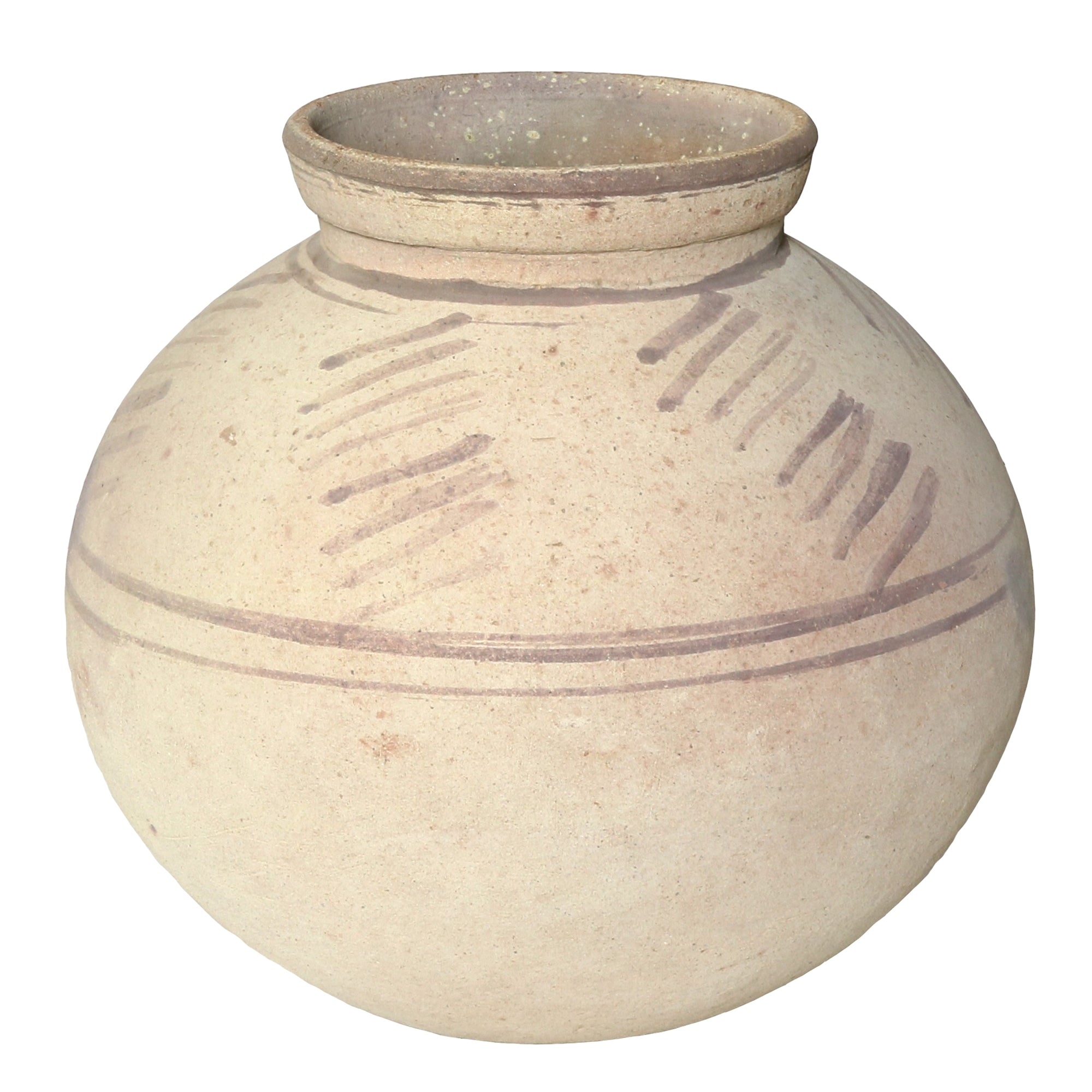 Found readily in Indian souks these clay pots are used on a daily basis to collect water to be used in the home. Today, the form is pretty enough to hold its own as a decorative piece, size and pattern will vary. For decorative use only.