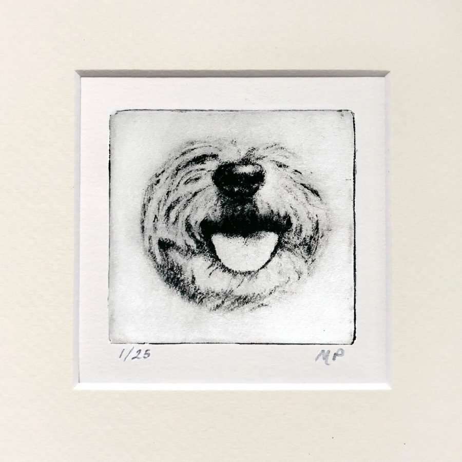 Pre-made mini pet portrait etchings ready to ship! I can personalize with your pet’s name as the title of the artwork.
