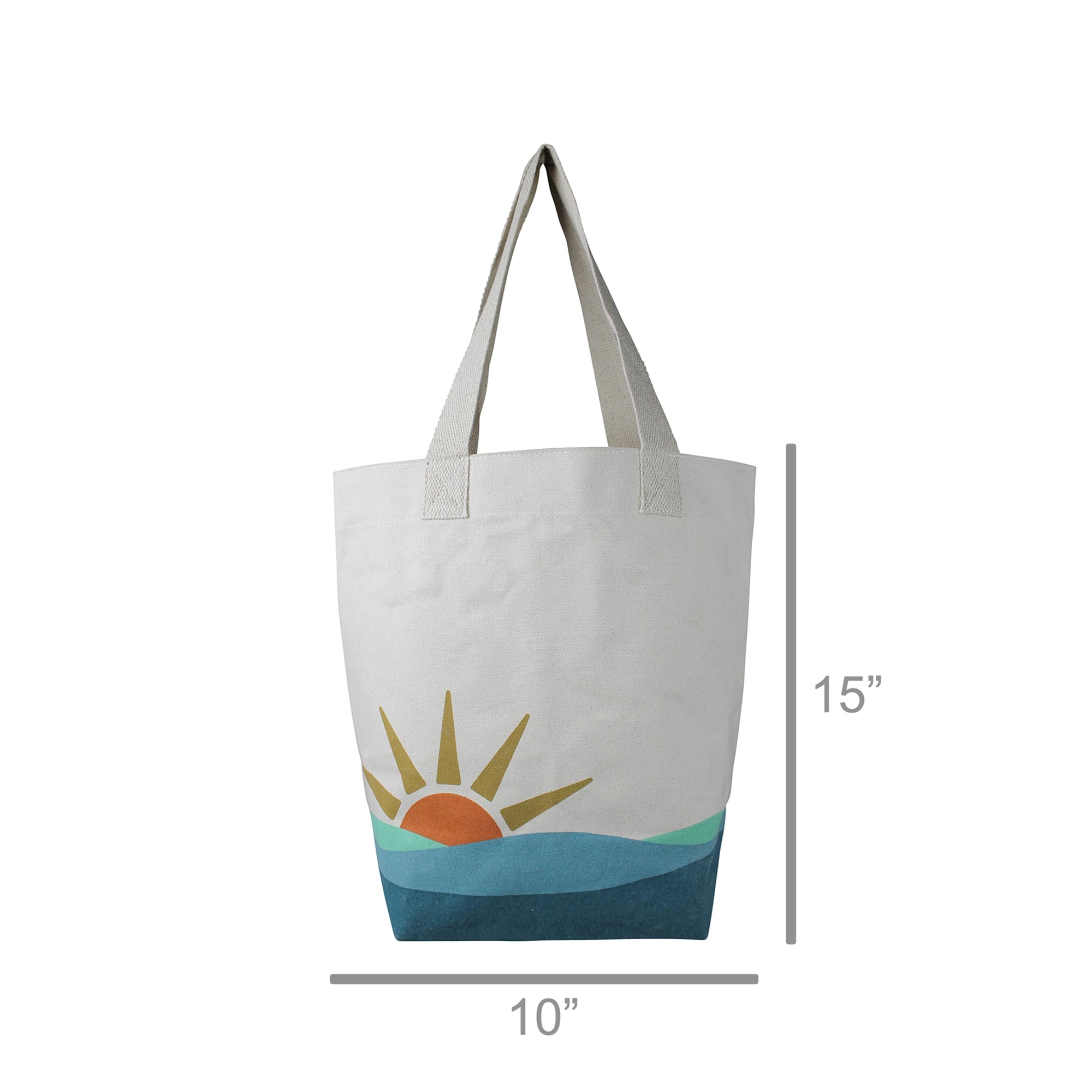 A seascape is captured 360 degrees on this cotton tote. Perfect packing for a farmers market en route to a day on the boat. 10” drop handle. 10” drop handle