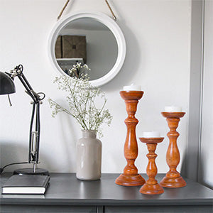 Crafted with elegance, the Tuli Candle Holder Set fits a variety of candles and features felt pads to protect your surfaces. Handcrafted by artisans who fuse traditional techniques with modern design, each piece embodies passion and dedication. Available in a range of colors and finishes, these sleek holders bring timeless charm to any space, whether as a centerpiece, mantle accent, or décor statement.