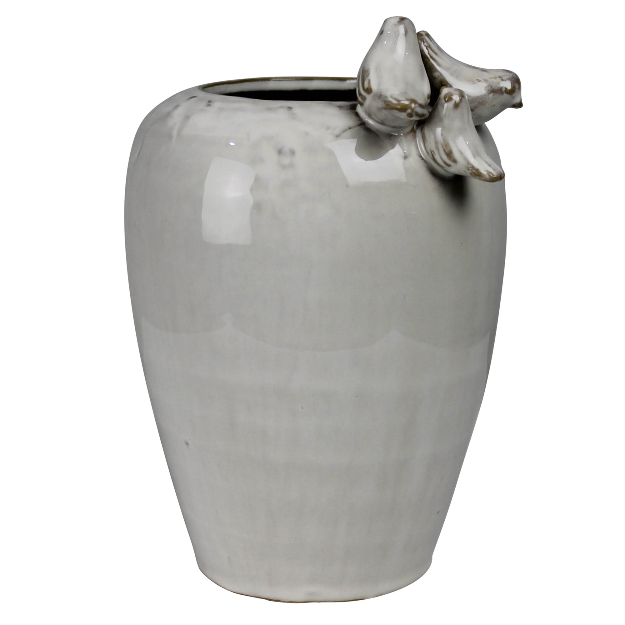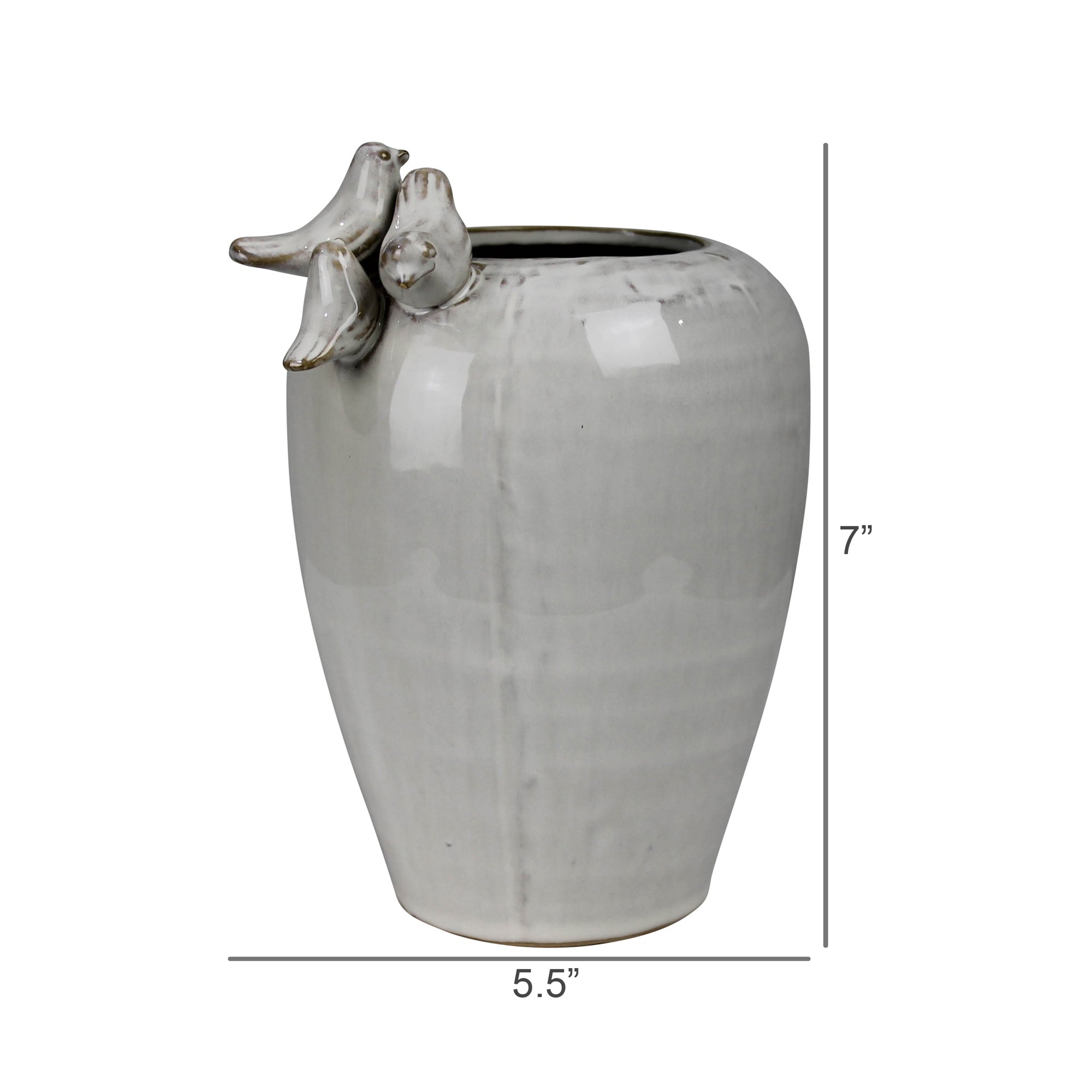 Vase with 3 Birds on Rim, Ceramic