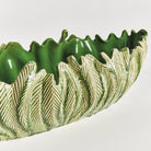 The beauty is in the details. The scale and craftsmanship of this decorative bowl are what makes it truly extraordinary. The motion-like design of the fronds and rich, reactive glaze create a stunning centerpiece atop kitchen table or island. Add some natural orbs, or a faux floral drop-in for some extra drama and height.