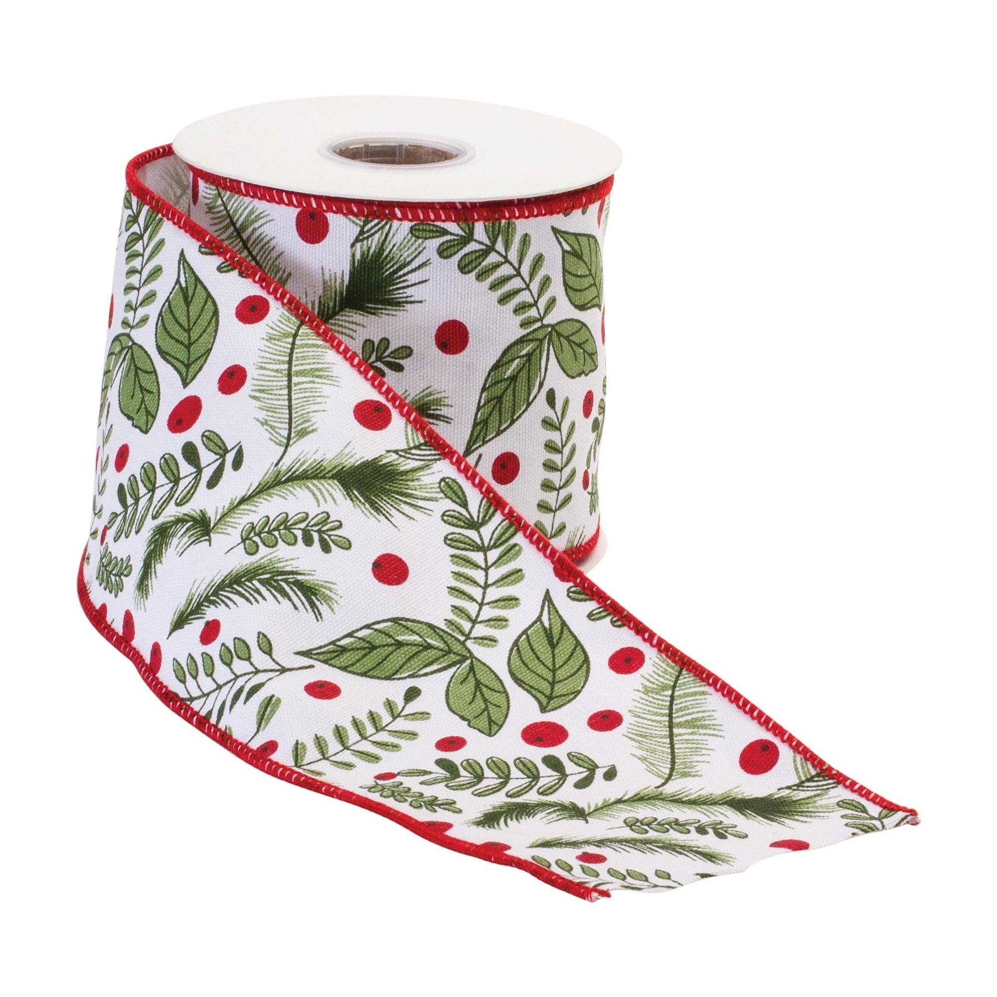 Embellish your home decor items, gift wrap, craft projects, and more with this beautiful Wired Holiday Ribbon. Measuring 4"x10 yards in length, the roll of ribbon features a Holly Berry design. The classic white, green and red tones paired with quality cotton and iron wire composition is the perfect combintion to create a stunning holiday display. Use this ribbon to make hand-tied bows to adorn onto your Christmas presents or holiday wreaths, or embellish your Christmas tree with a trailing ribbon garland.