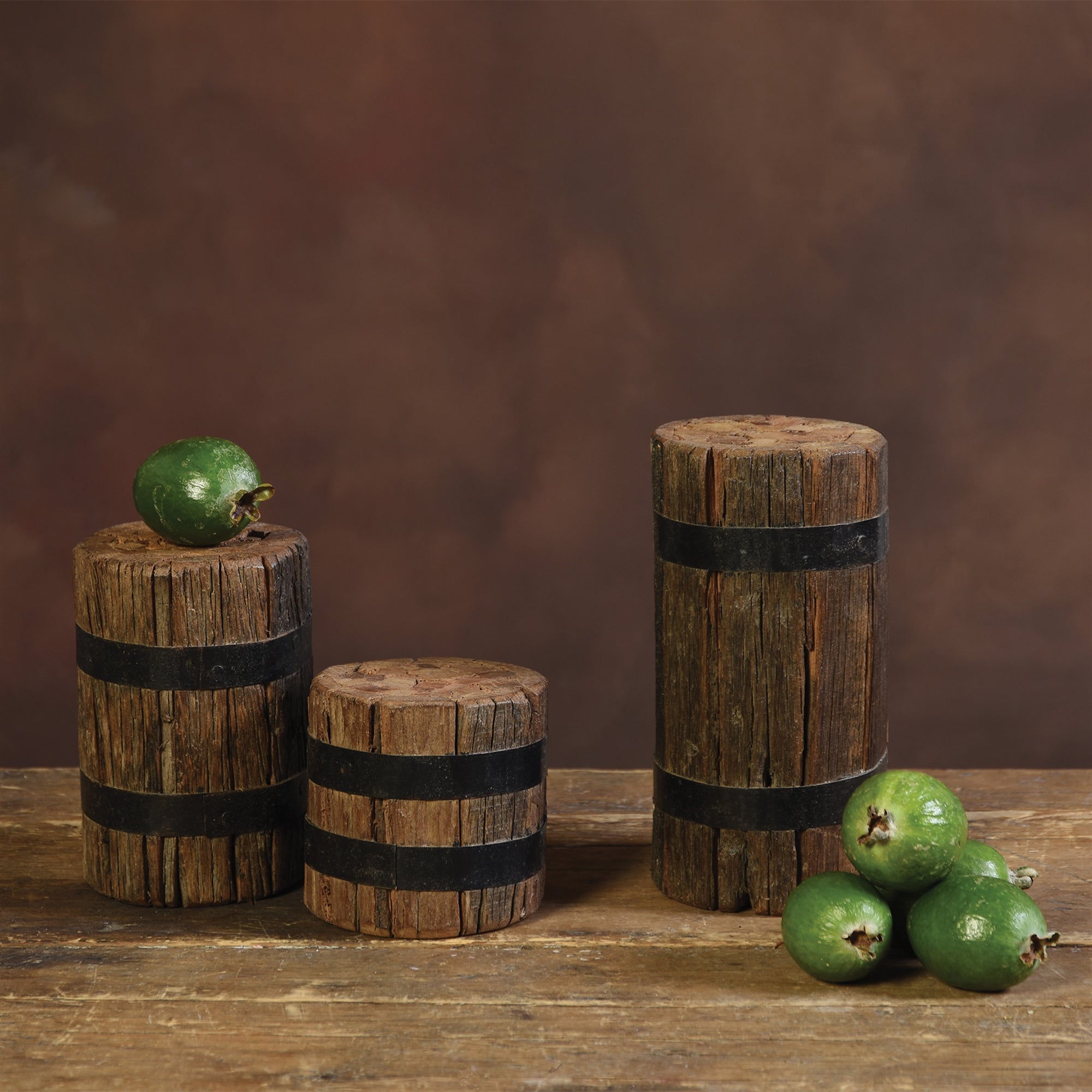 Old wood has found new purpose. Wood reclaimed from salvaged windows, doors, carts and bridges has been bound together into sturdy bundles. Ideal for displayand merchandising.