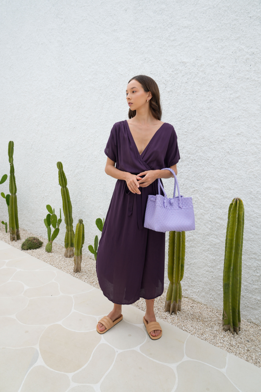 Zoe Recycled Plastic Woven Tote Small - Lavender