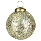 Shimmering flakes of gold glass encrust glass spheres to add an extra dose of shimmer to your tree.