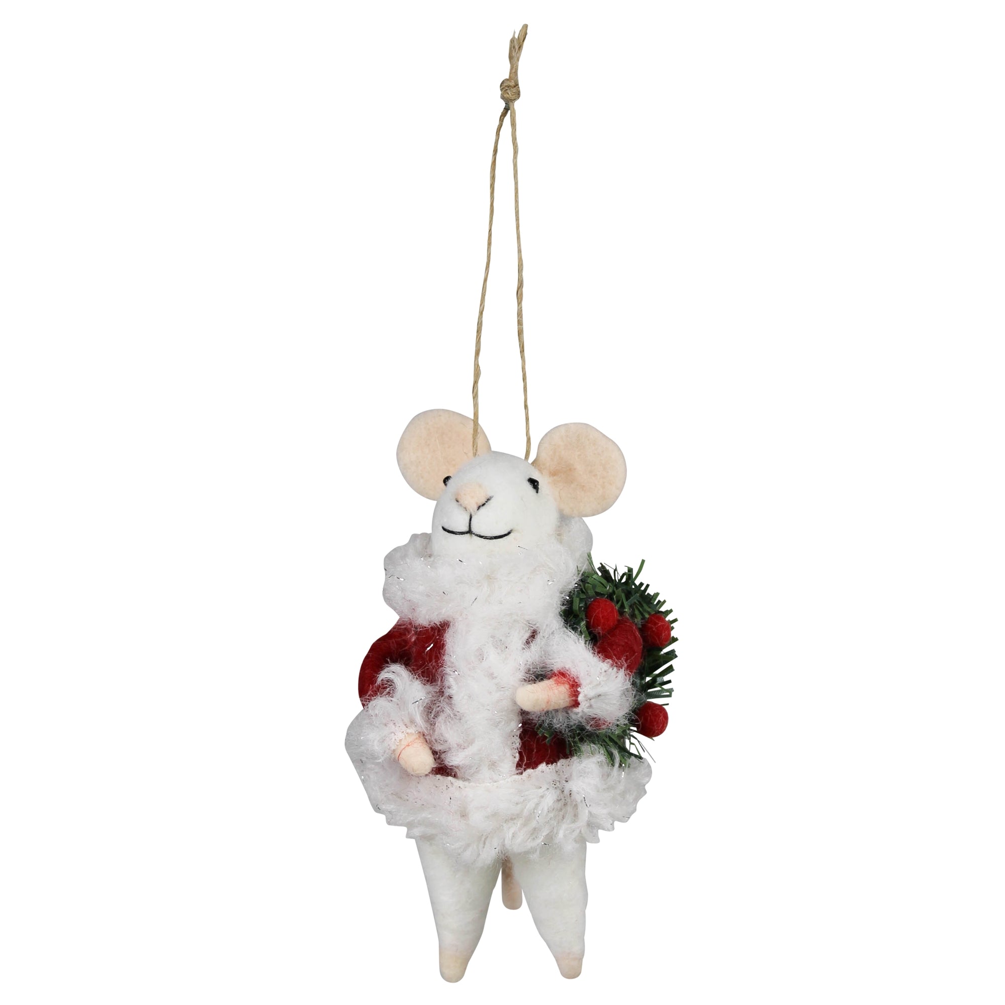 Handcrafted from soft felt, the mouse ornament carrying a festive wreath adds a playful touch to your holiday decor. Handcrafted with intricate detail, it brings warmth, charm, and seasonal cheer to any festive display.