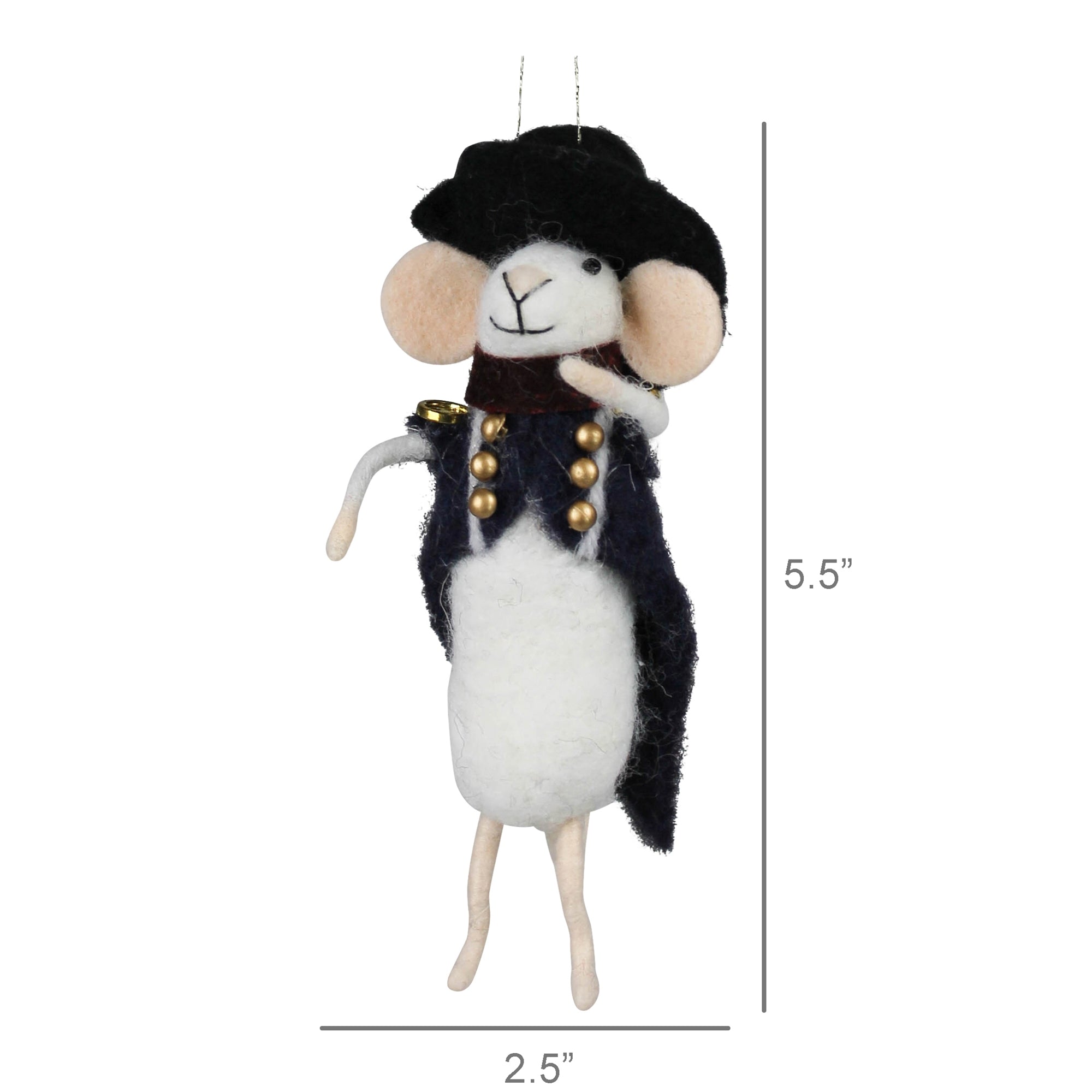 Handcrafted from soft felt, the Napoleon mouse ornament exudes playful charm with its tiny hat and regal pose. With attention to detail, it brings a whimsical touch to your holiday decor, adding a dash of history and humor to any festive display.