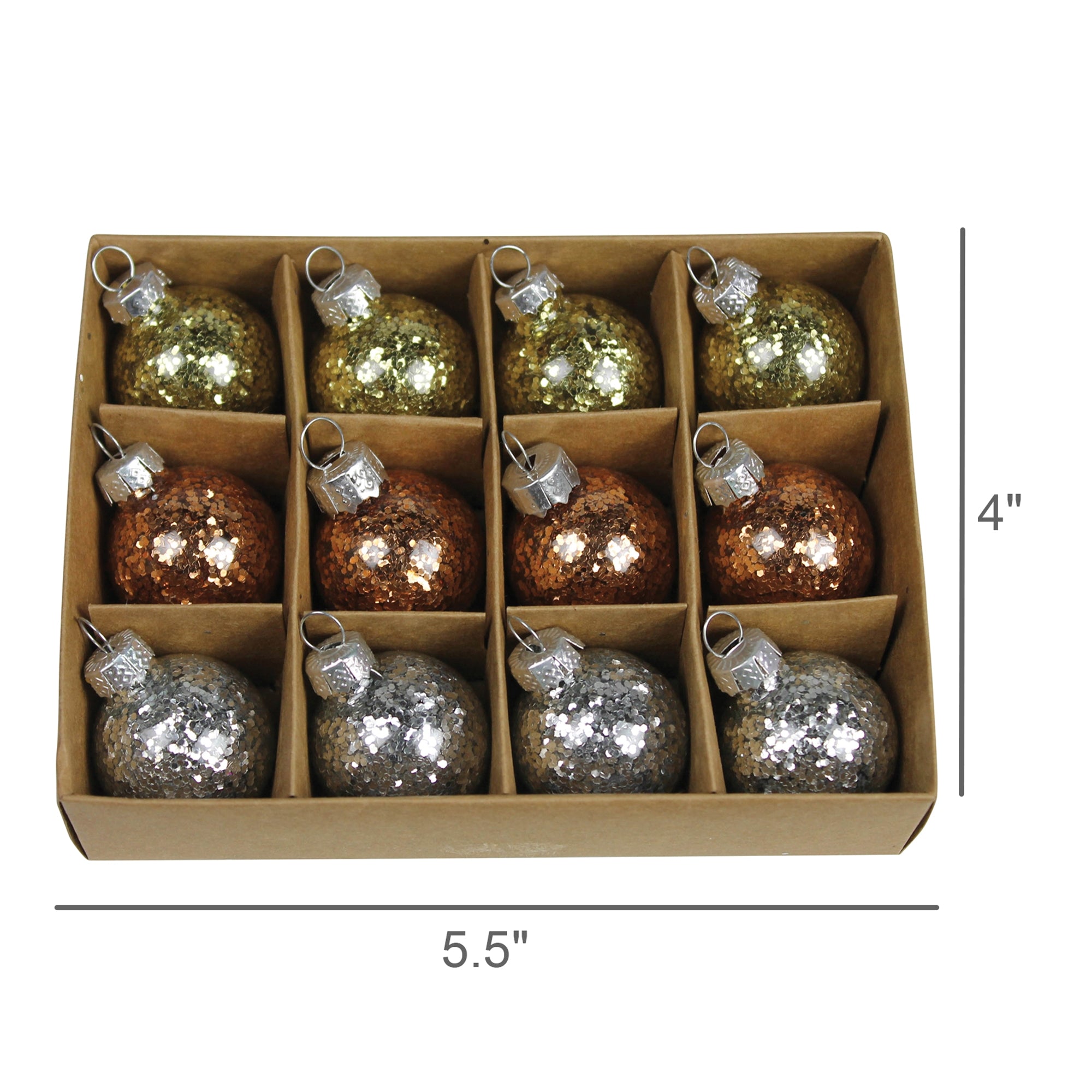 Tiny Ornaments, Glass, Glitter - Box of 12