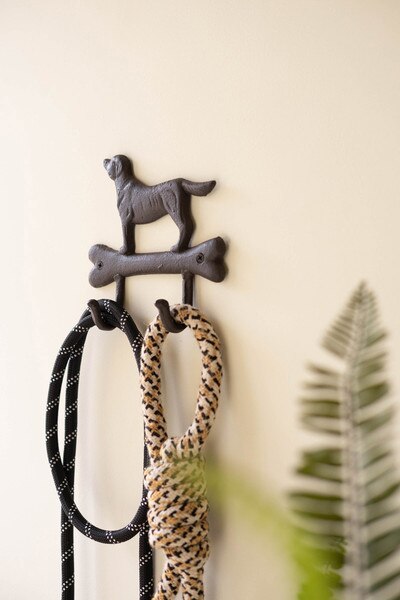 This playful pup keeps your essentials right where you need them. With a sweet bone shaped hook and sturdy cast iron construction, it adds a friendly touch to mudrooms, entryways, or pet corners.