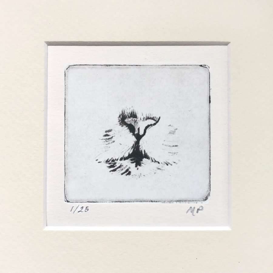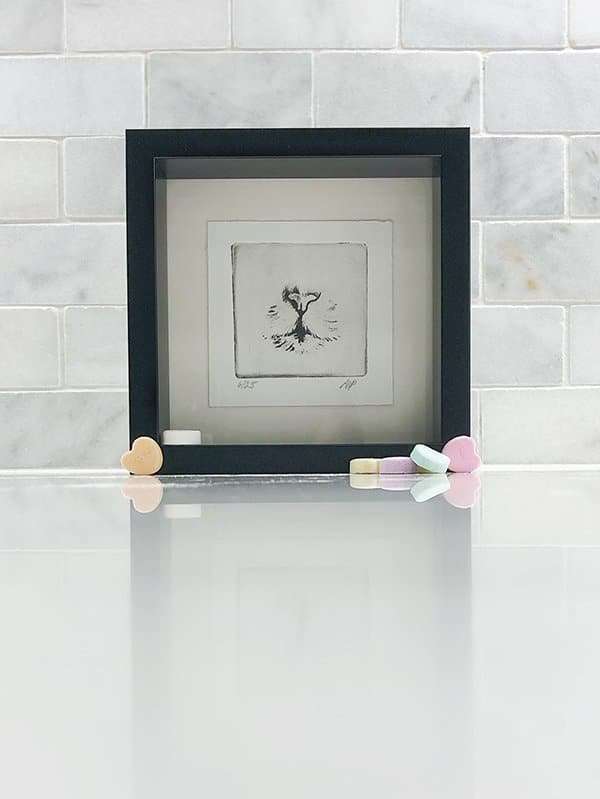 - 2.5” square etching limited edition print in 5x5" mat for small table easel or your 5x5 standard size frame
