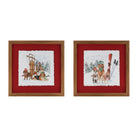 Add a whimsical touch to your holiday decor with this charming set of prints featuring dog characters with sled and ski accents. Set in bold red mats under glass, these playful artworks bring a fun, wintry vibe to your cabin or ski-themed displays. Perfect for your living room or kitchen, this set also makes a delightful gift for dog lovers and skiers alike. Each piece in the set comes with a sawtooth hook on the back for securing them safely to the walls of your home.