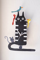 Hand Painted Wall Clock Black Cat With Birds (Case Pack)