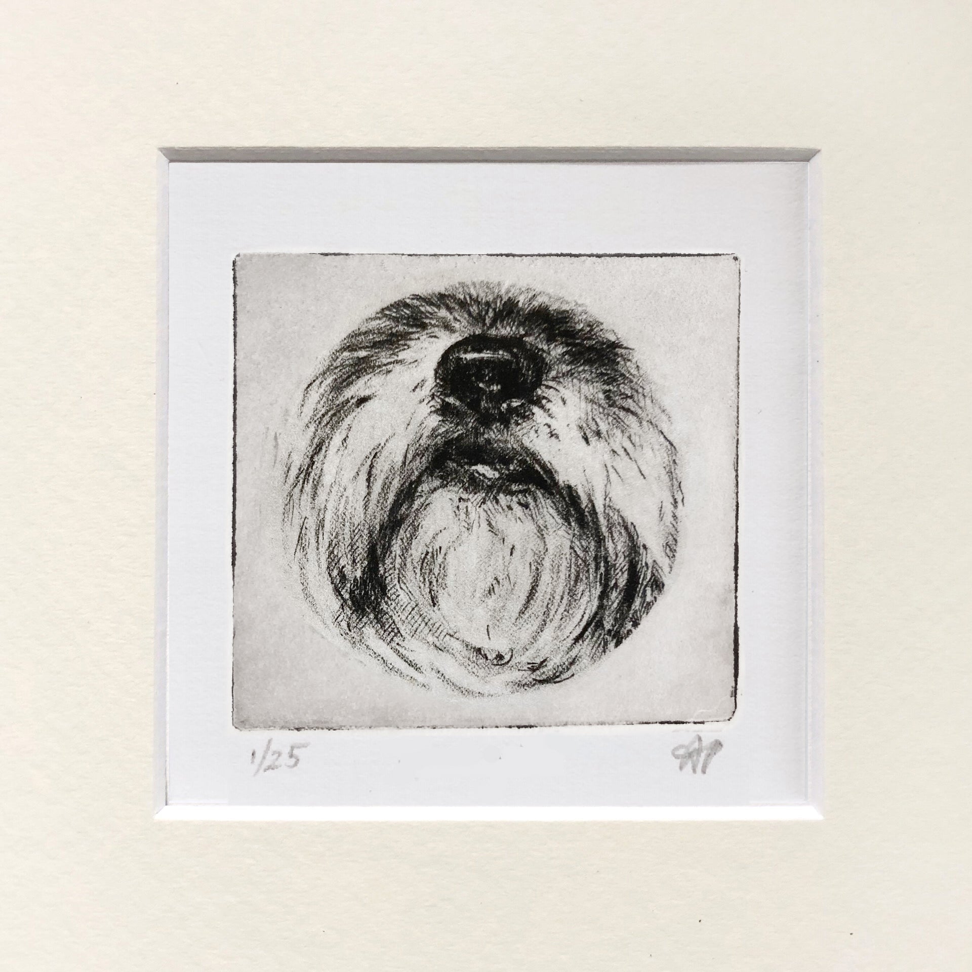 Pre-made mini pet portrait etchings ready to ship! I can personalize with your pet’s name as the title of the artwork.