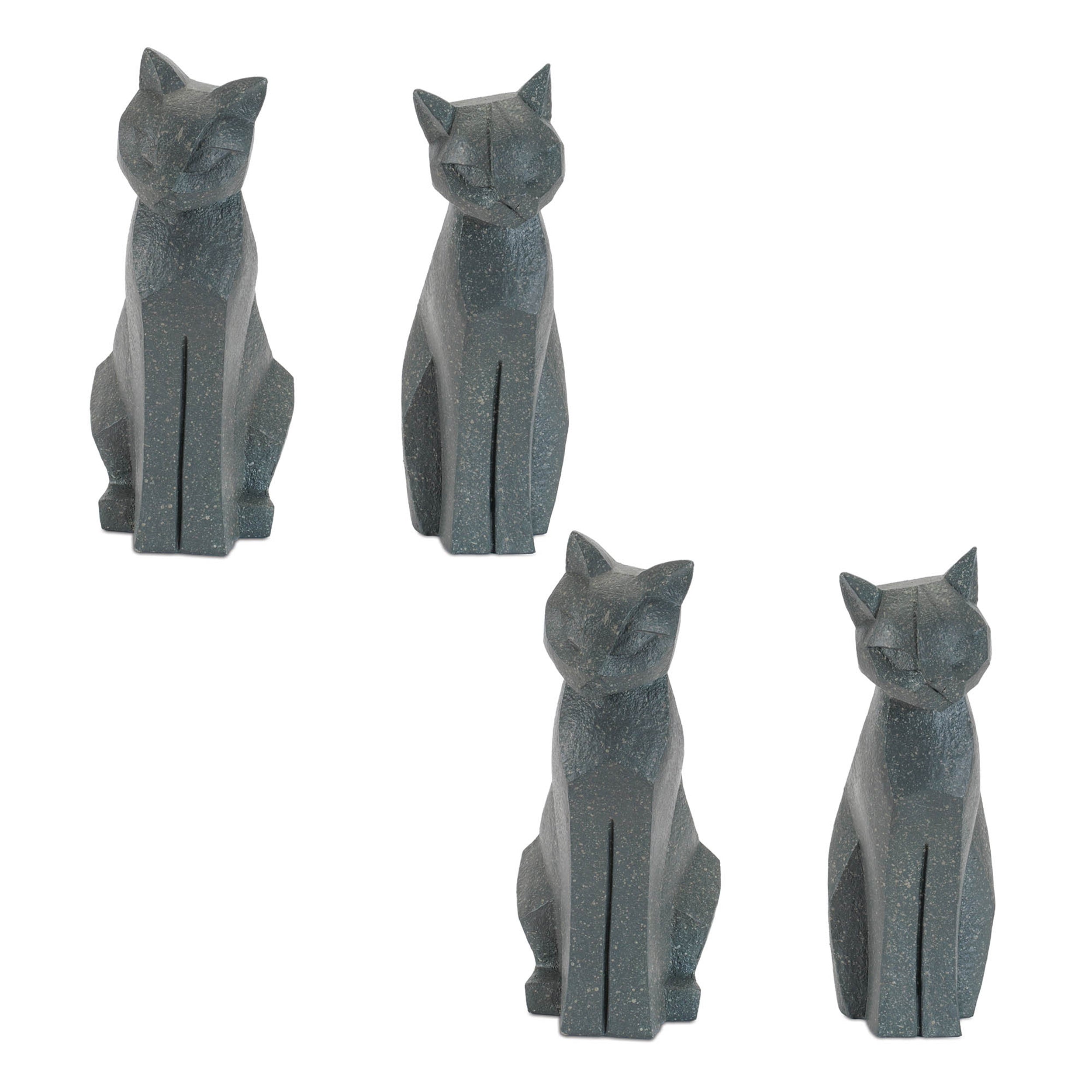 Enhance your home decor with this set of four Modern Sitting Cat Statues. Crafted from durable polyresin in cool gray tones, each cat features a distressed speckled finish that adds a contemporary touch to your space. The sleek, sitting stance of the cats brings an elegant yet playful vibe to bookshelves, tabletops, or mantels, making them the perfect addition to any modern or nature-inspired home.