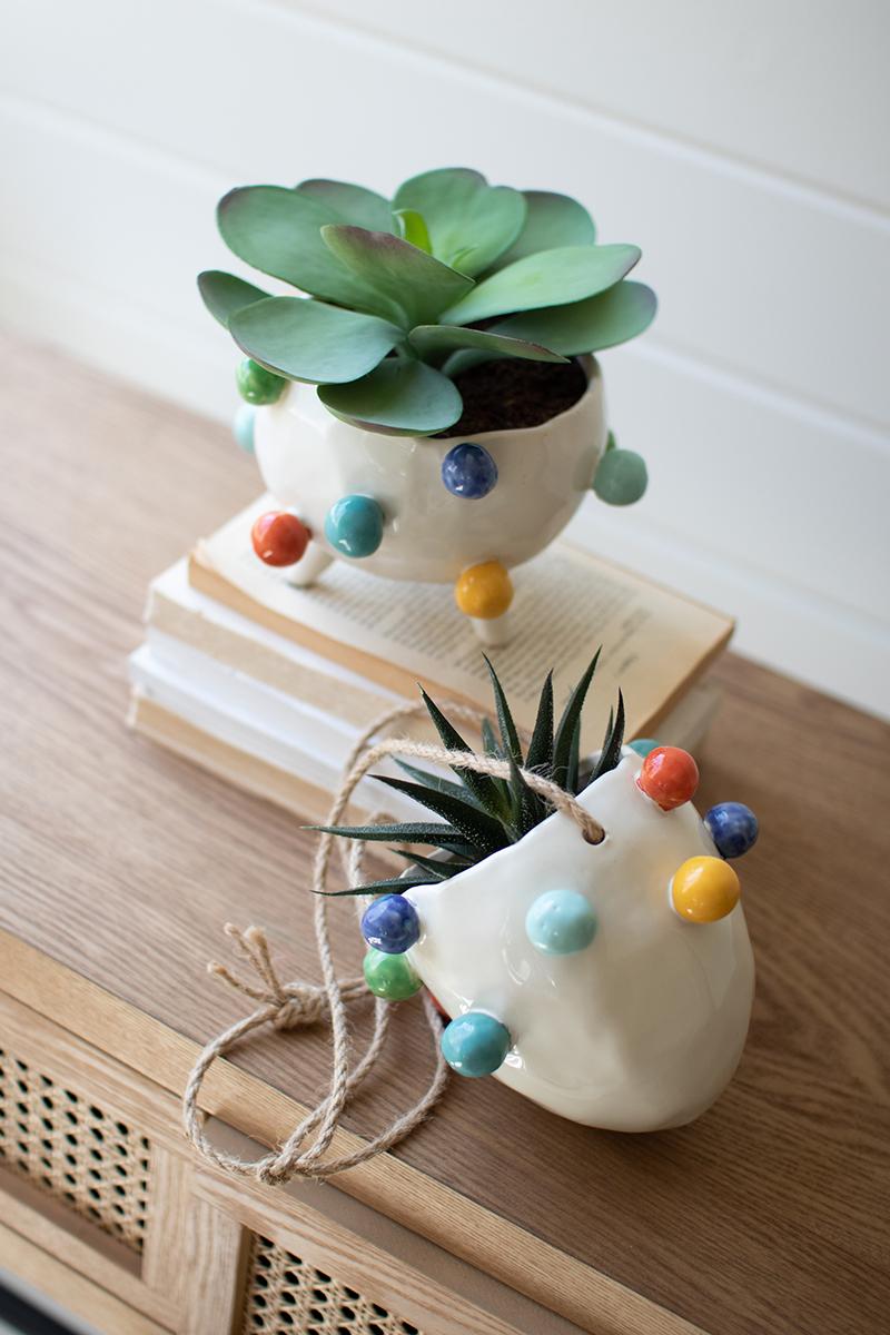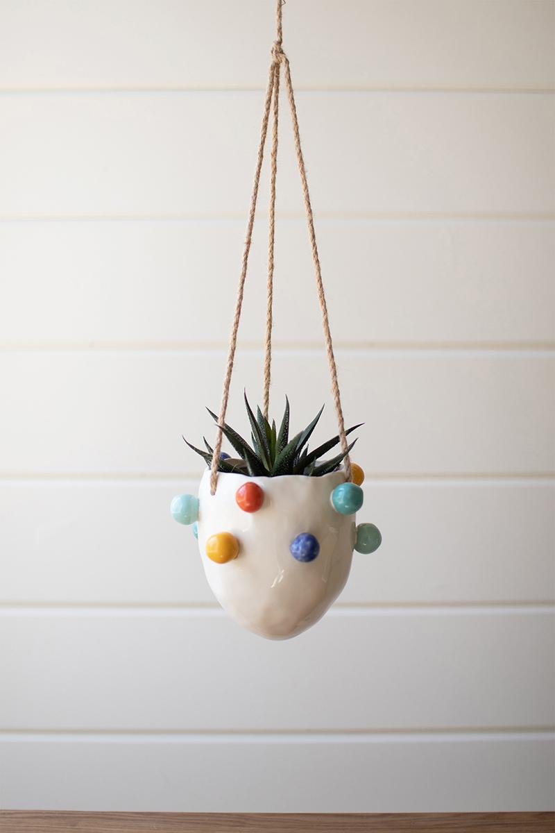 Hang it up with this sweet ceramic planter. Its colorful bubbles add a pop of color, and it is small enough to hang anywhere. This bubble planter is an excellent addition to a kid's bedroom or your other hanging displays.