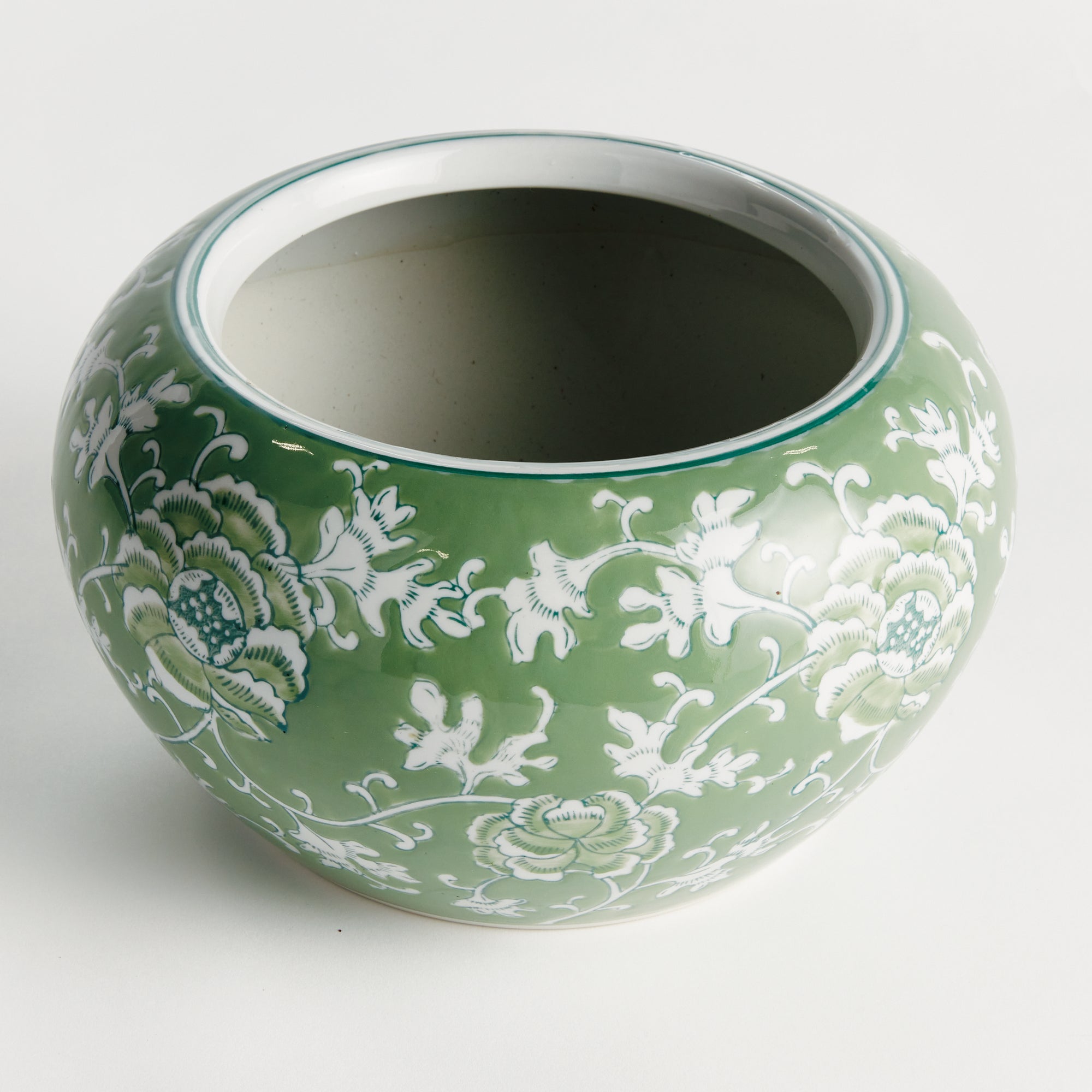 A classic chinoiserie in shades of green & white. How refreshing! The color green is known to have a harmonizing, balancing effect, and is an inspired design choice for the Imperial Lotus Planter. A welcome addition, bringing stability and calm to the well-appointed kitchen, study or covered porch.