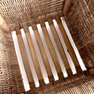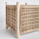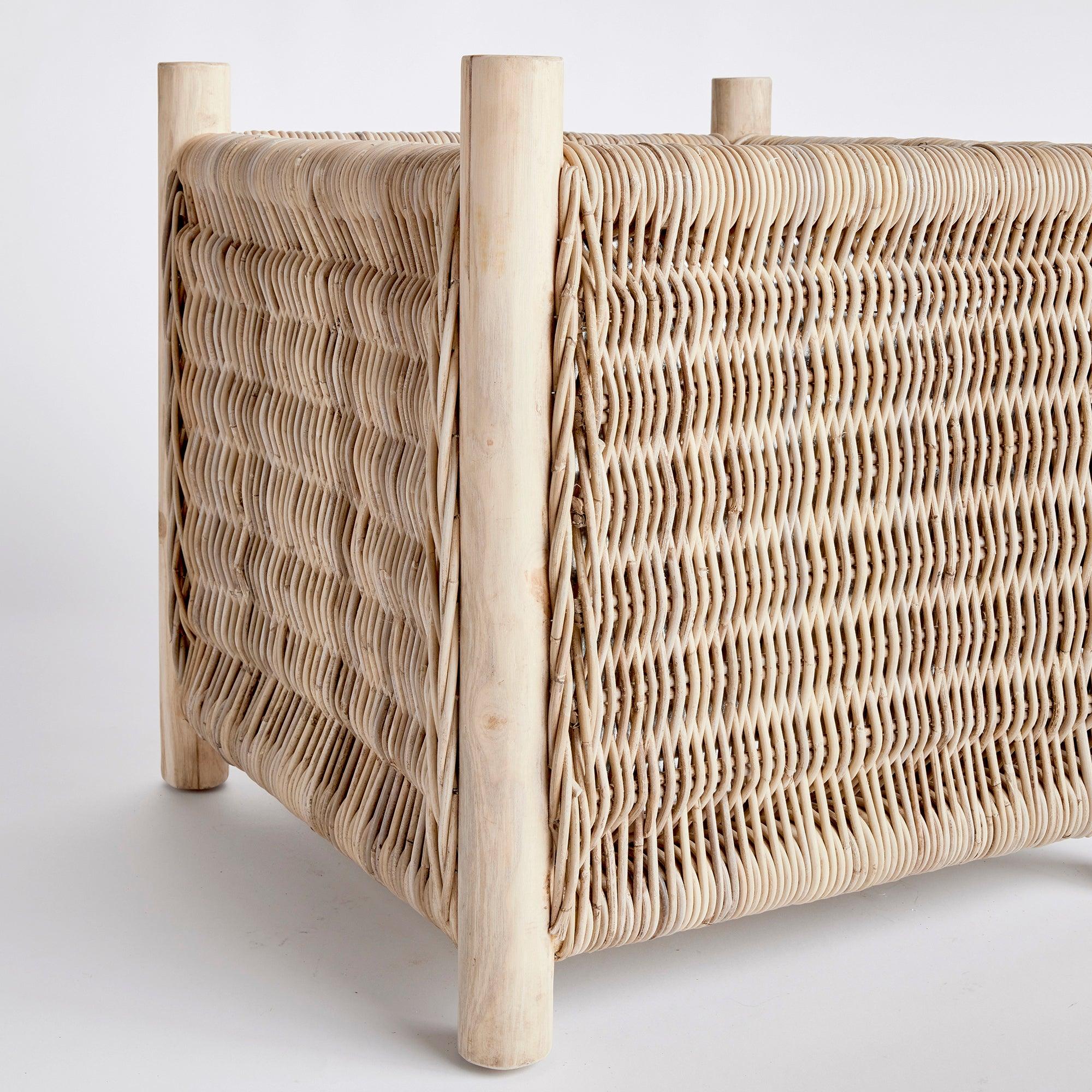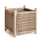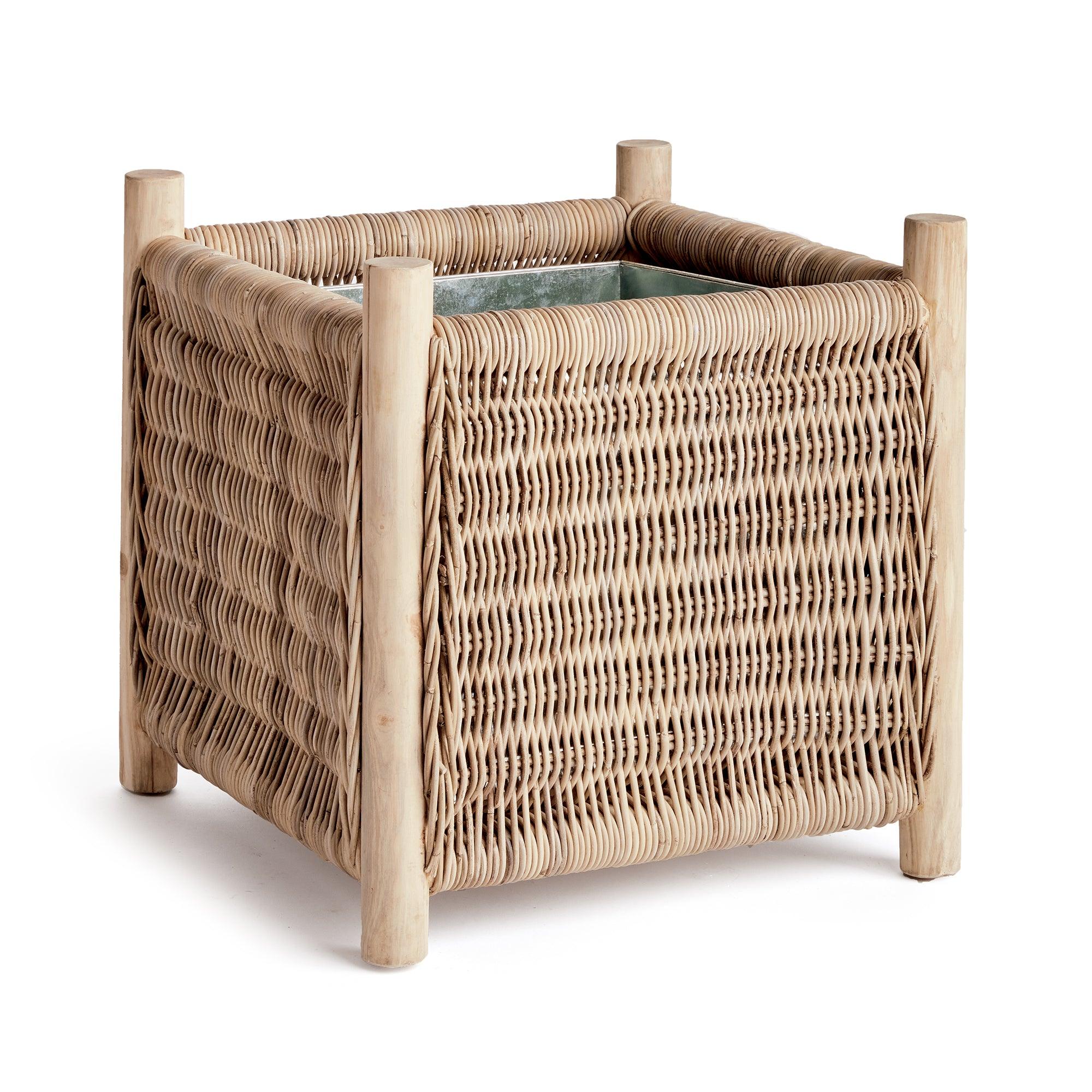 Talk about grand scale! This well-constructed planter has all the bells & whistles. A removable zinc galvanized liner, teak legs, organic all-natural rattan, it is quite the statement piece. And did we mention scale?