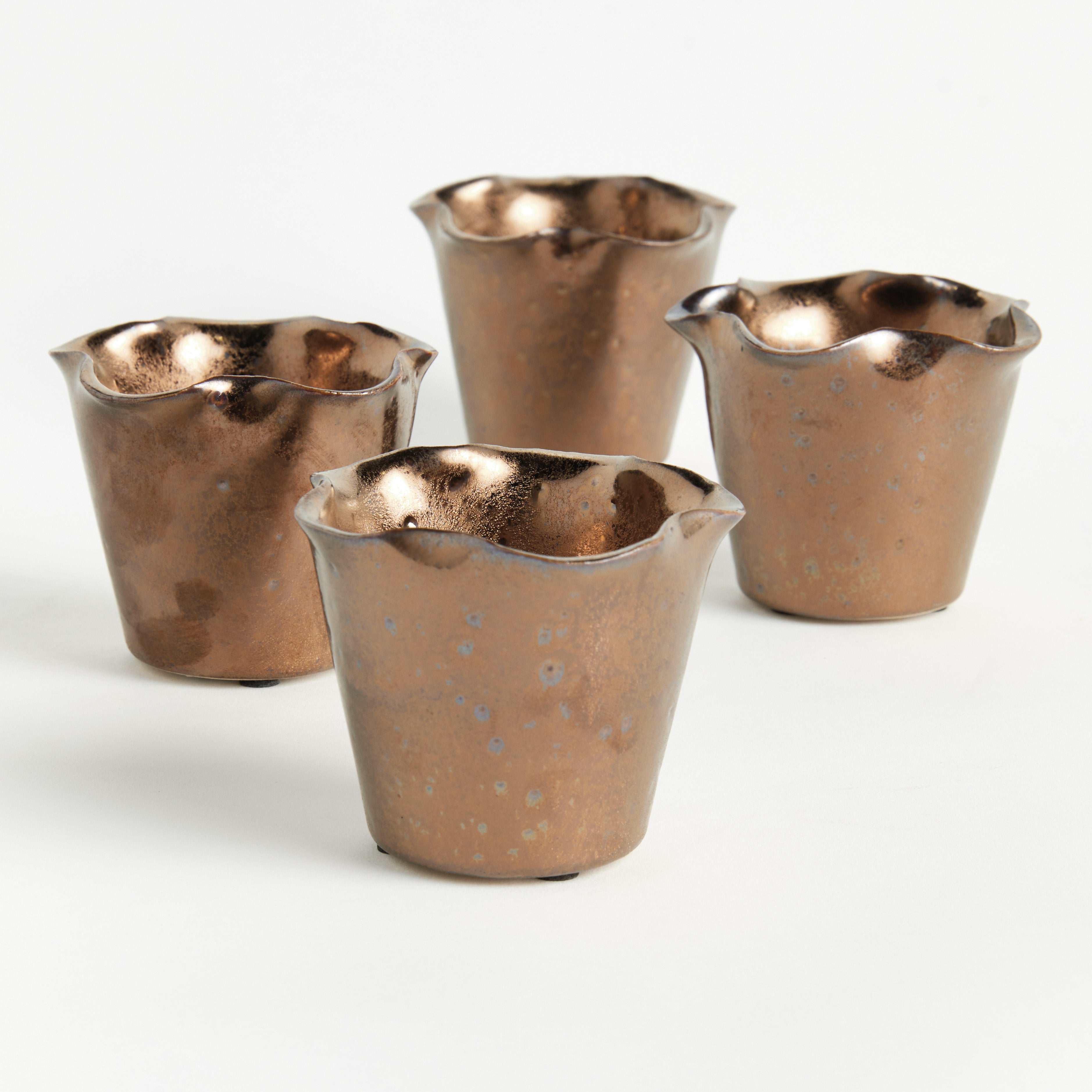 In a traditional English silhouette, this set of mini pots has a regal charm. Finished with a rich, bronze reactive glaze, it is a suitable vessel for any of your prized flowers from the garden.