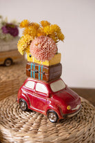 Red Ceramic Car With Luggage Planter (Pack Of 2)