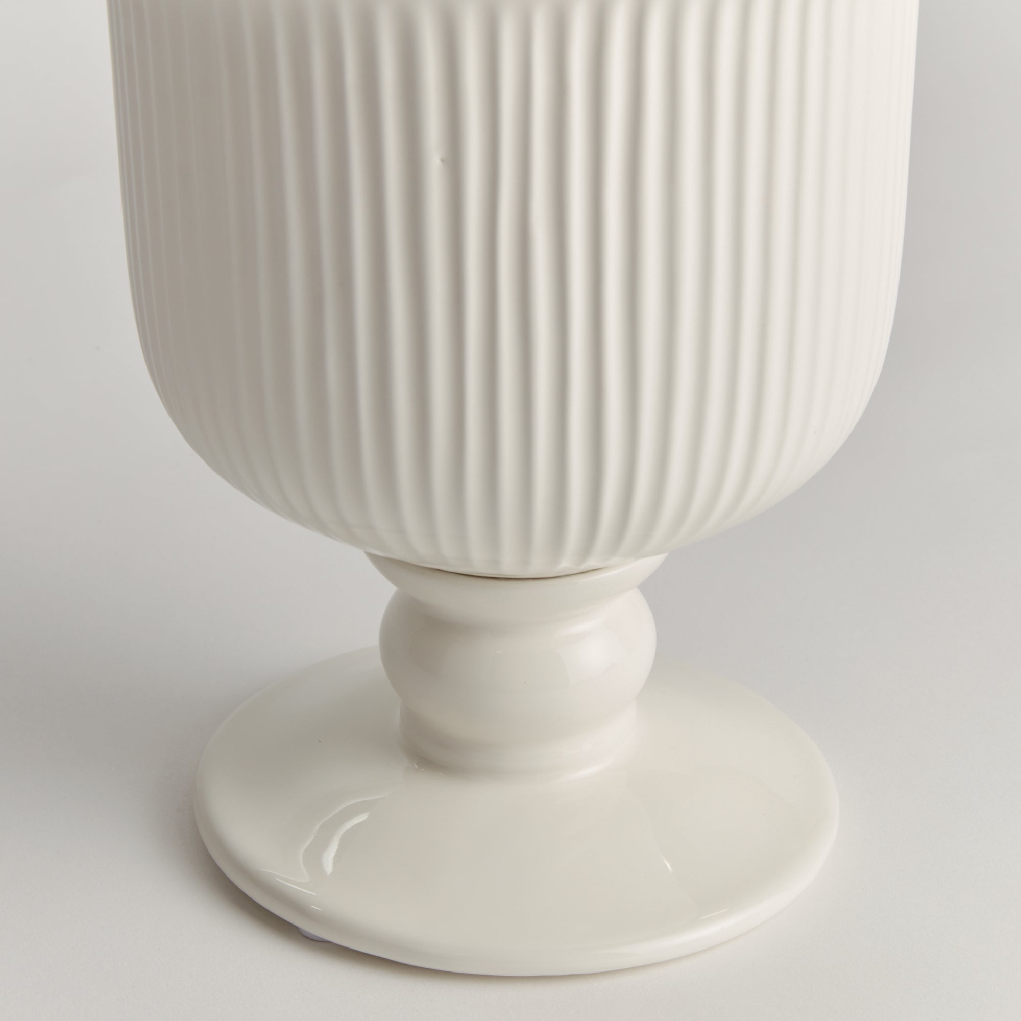 Interior designers are always on the hunt for that tried & true accent to enhance their well-appointed space. The traditional shape and ribbed design are classic in feel. Drop in your favorite floral, and you've got a beautiful centerpiece.