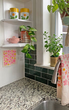 Our dish towel + sponge cloth sets are packaged ready for gifting! Packaged set includes one towel and one sponge cloth and the label on the back shows what the full towel + sponge designs look like. TOWEL • Each towel measures approx. 24"x26" (size tolerance 2-3") • All natural, unbleached 100% cotton • Machine washable • Hand screen-printed with eco-friendly inks SPONGE CLOTH These Swedish sponge cloths are an eco-friendly replacement for kitchen sponges and paper towels. They last for months and are biodegradable or compostable, making cleaning up cute with less waste. • Sponge measures 6.8” x 7.75” • Made of 100% biodegradable material • Hole on top to make it easier to hang by the sink • Screen printed with waterbased, eco-friendly ink • Can be cleaned in dishwasher or washing machine • Soft and pliable when wet, and dries quickly in between uses