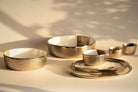 Inspired by veining in a hunk of marble, the Dansbury, a softer color option in the Abstract collection revels in the randomness of patterns that magically appear when two colors come together. Modern yet timeless ,the simple rounded profiles complement the soft tones of the enamel colors. Meticulously created by master craftsmen. Plates nest together to make sophisticated yet casual dinnerware .Will not scratch or break.
