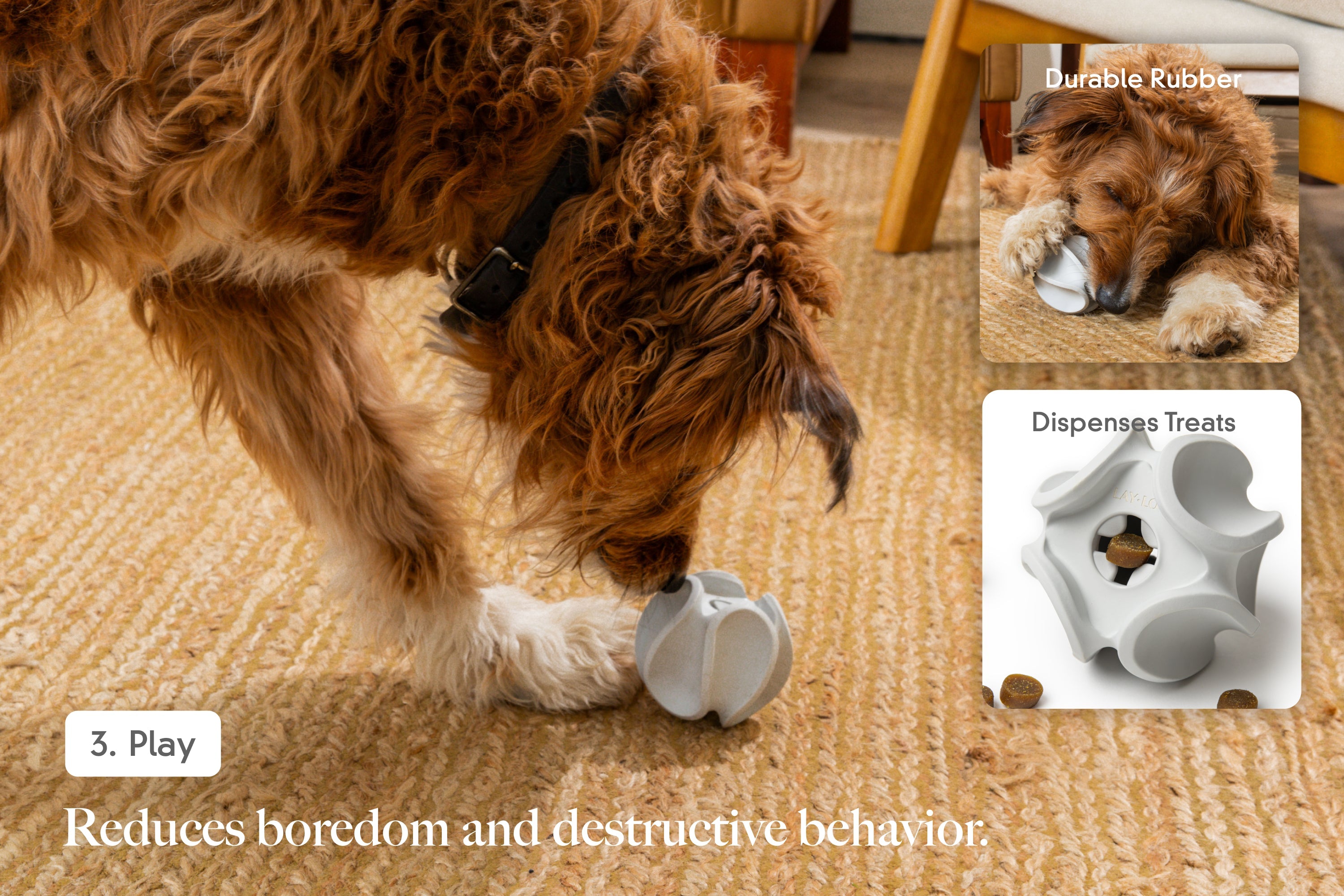 A thoughtfully designed 3-piece set to help your dog feel calmer, more focused, and fulfilled. This elevated bundle includes a ripple-textured slow lick bowl, a soft-grid snuffle mat, and a sculptural treat-dispensing toy—each created to ease anxiety, reduce stress, and satisfy natural instincts to lick, sniff, and forage. Ideal for puppies and high-energy adults. BPA-free, dishwasher-safe, and backed by certified dog experts, it’s your go-to for daily mental stimulation and better behavior—beautifully delivered.