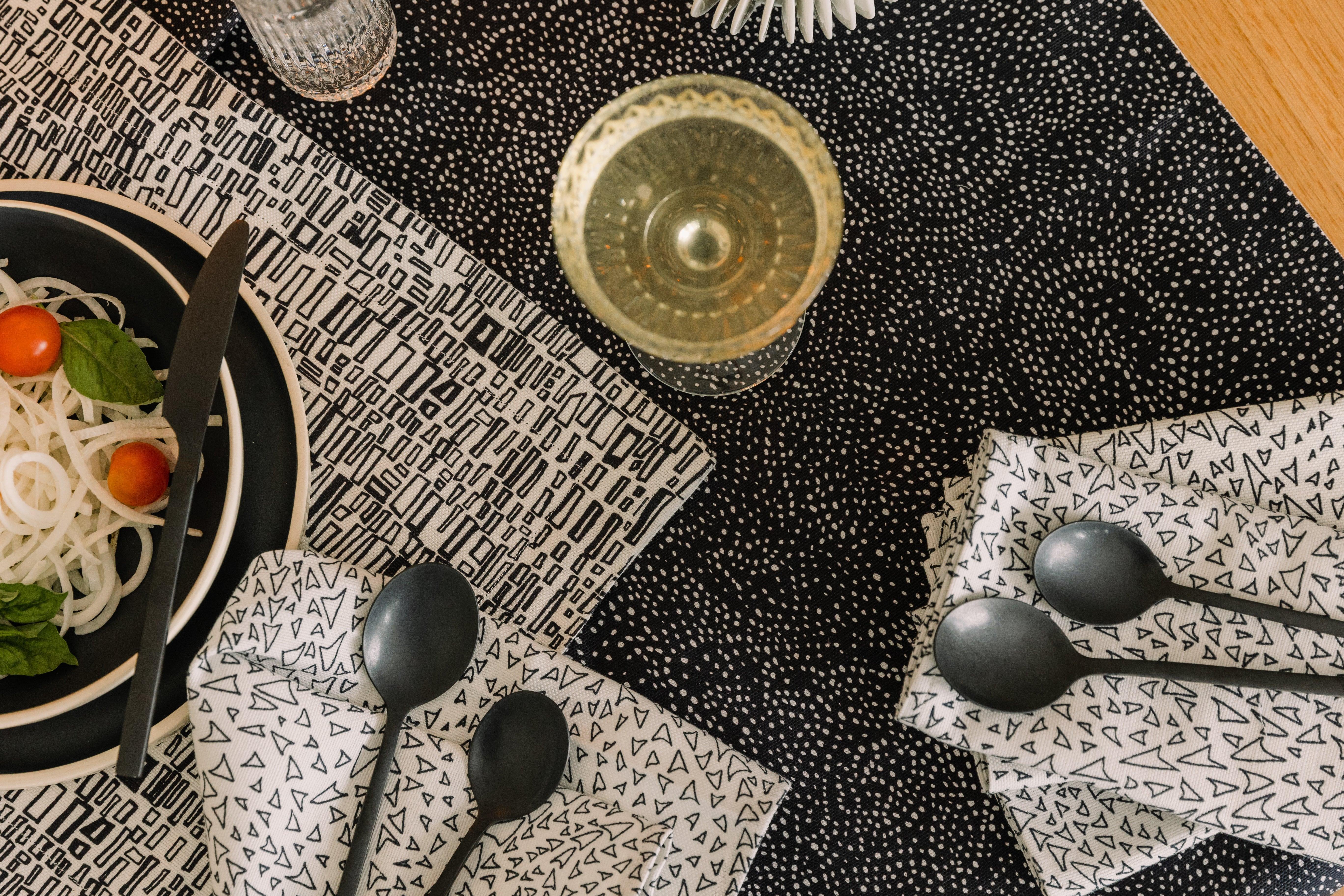 The Basilone Napkin in Albatross is responsibly printed, cut and sewn in the US on a 55% linen and 45% cotton blend with yarns from Belgium. Each napkin measures approximately 18” x 18”.