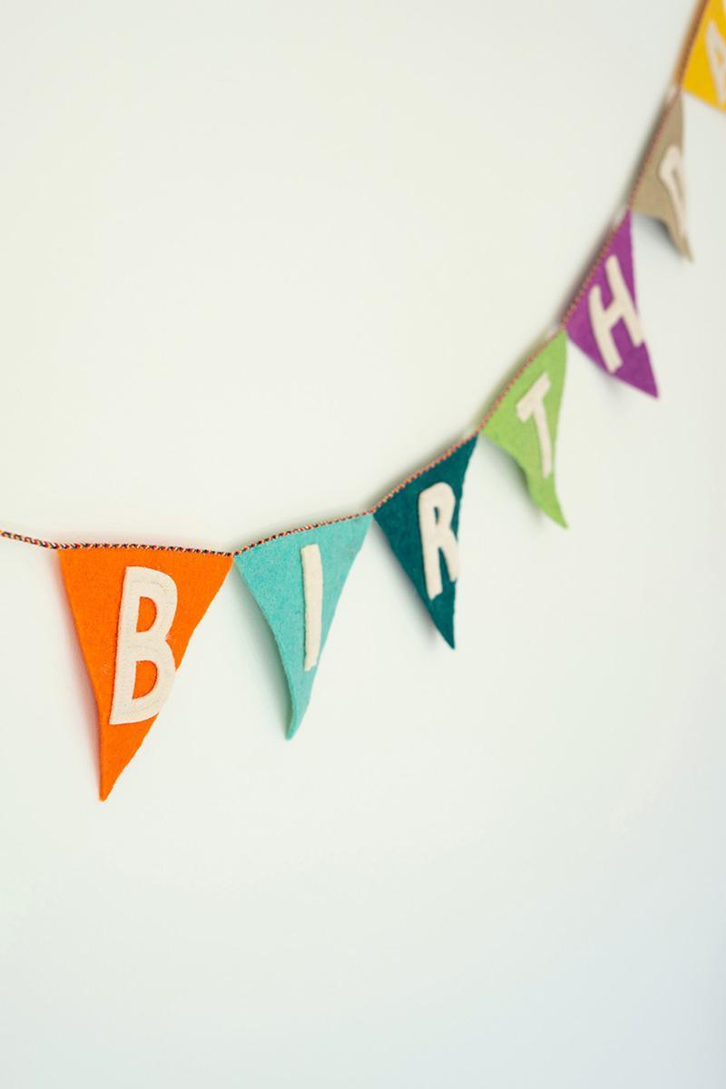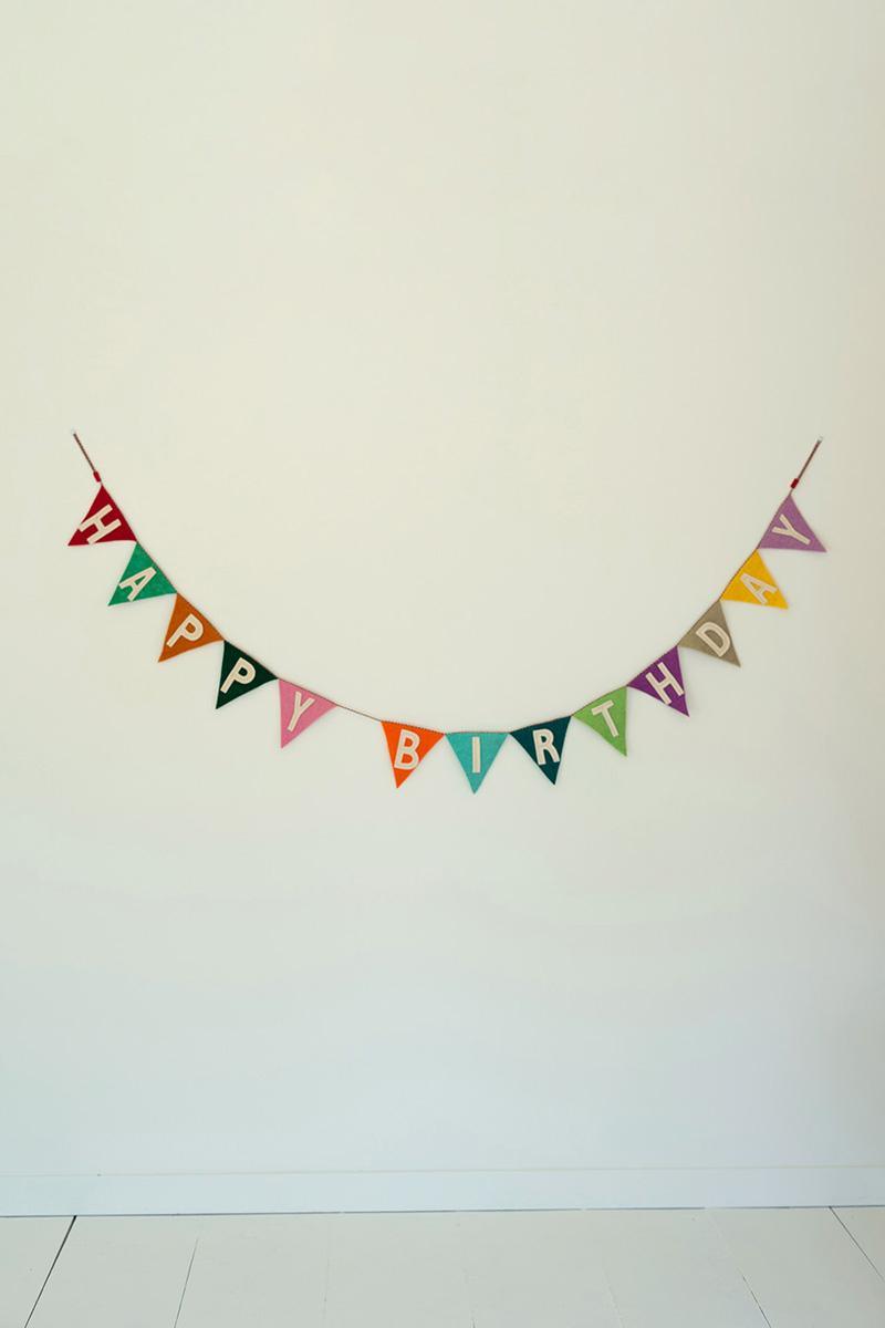 Proclaim your good wishes to the birthday person with this colorful felt flag garland. It spells out Happy Birthday in several brightly colored felt flags. This garland can be hung or draped for any birthday party.
