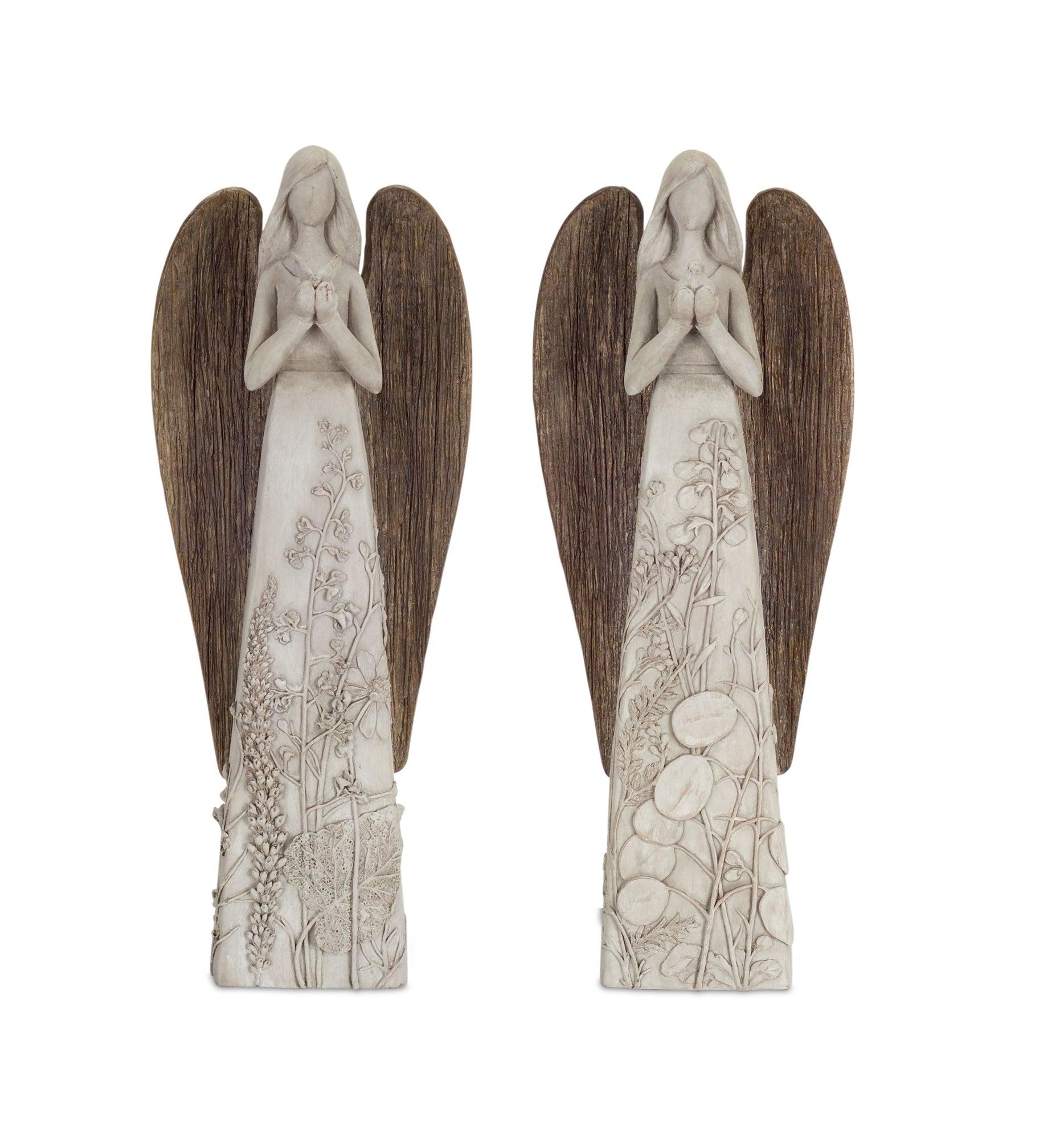 Floral Sculpted Angel with Wood Style Wings (Set of 2)