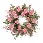 Bring a vibrant touch of nature to your home with the Mixed Pincushion Floral Wreath. Featuring bright pink Scabiosa flowers (also known as "pincushion" blooms), this wreath is complemented by trendy eucalyptus leaves for a fresh and modern appeal. The natural twig grapevine base adds texture and depth, while the wired stems allow for easy shaping and a full, versatile display. Hang this wreath on your front door, in your entryway, or above your mantle to create an inviting, springtime atmosphere. Measures 20.4 inches across when branches are extended and fluffed.