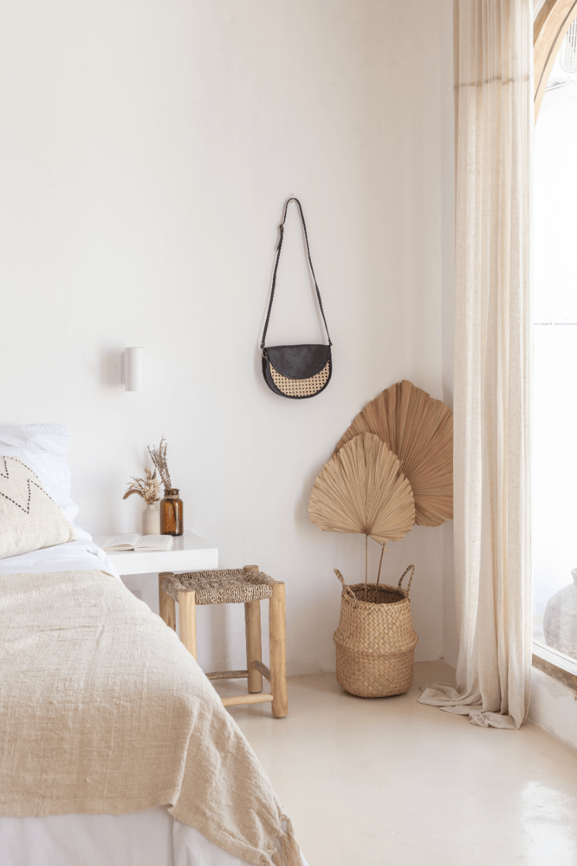This crossbody bag features leather detailing and cane webbing. These natural elements combine beautifully to create a sophisticated yet casual feel.