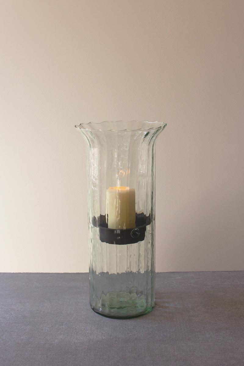 Ribbed Glass Candle Cylinder W Rustic Insert Large