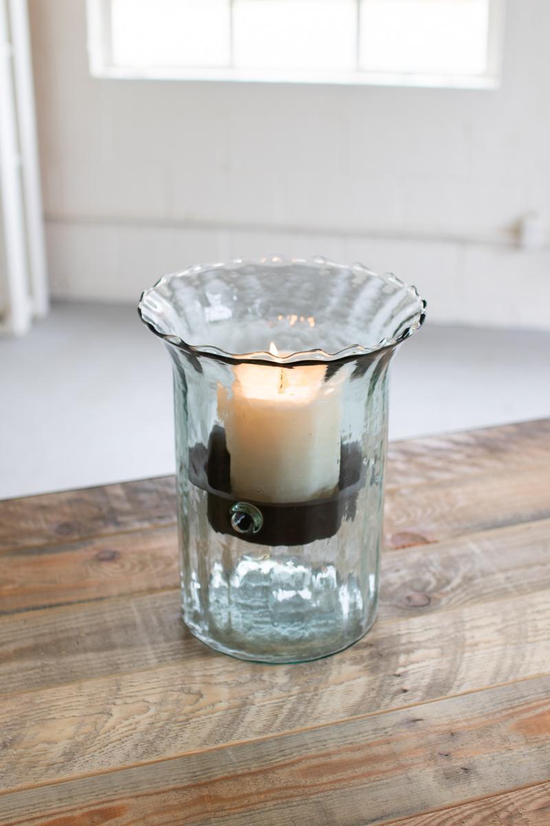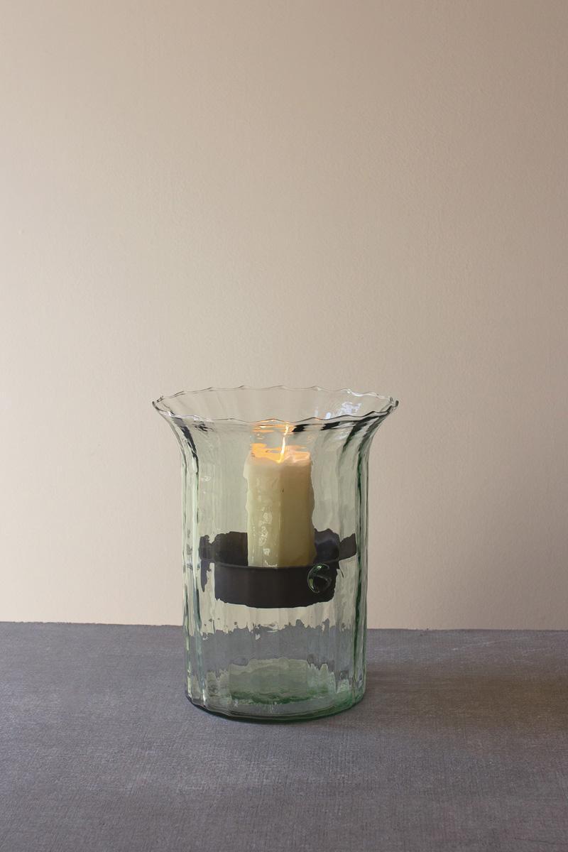 Ribbed Glass Candle Cylinder W Rustic Insert Small