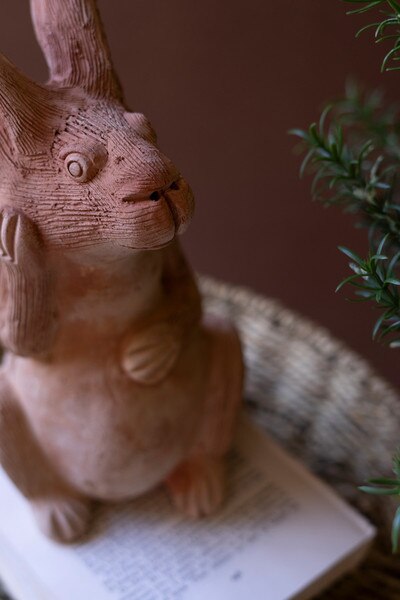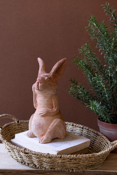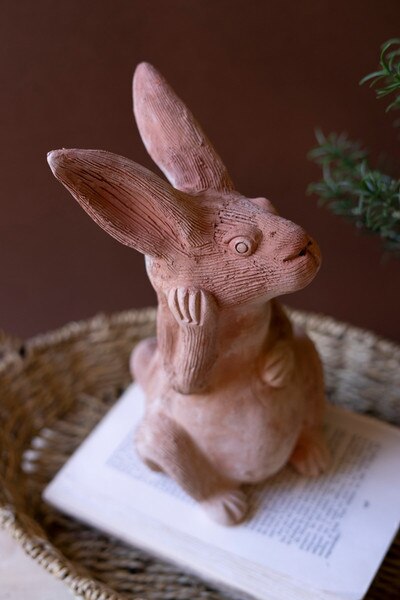 Crafted with soft contours and a sweet upright pose, this terracotta bunny brings a touch of woodland charm to your decor. Its natural finish and handcrafted feel make it a delightful accent for spring styling or year-round warmth. Finished all around.