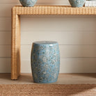 In a mix of modern and traditional sensibility, this Pomegranate Sketch Stool is an exquisite accent. Hand painted on porcelain in a gestural pattern, the soft tones are just the right shade of ethereal blue. A tone that plays well in any palette, and is an inspired design choice for this traditional stool. A welcome addition to the well-appointed home.
