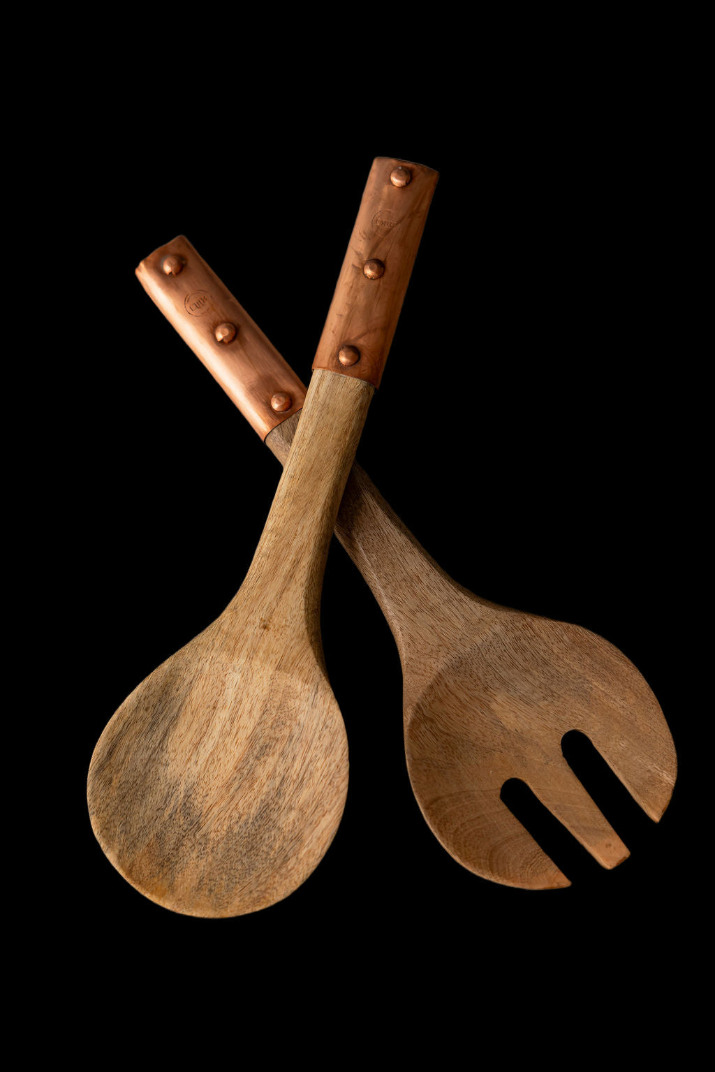 Vintage Inspired Wood Serving Utensils with Copper Strap Handles