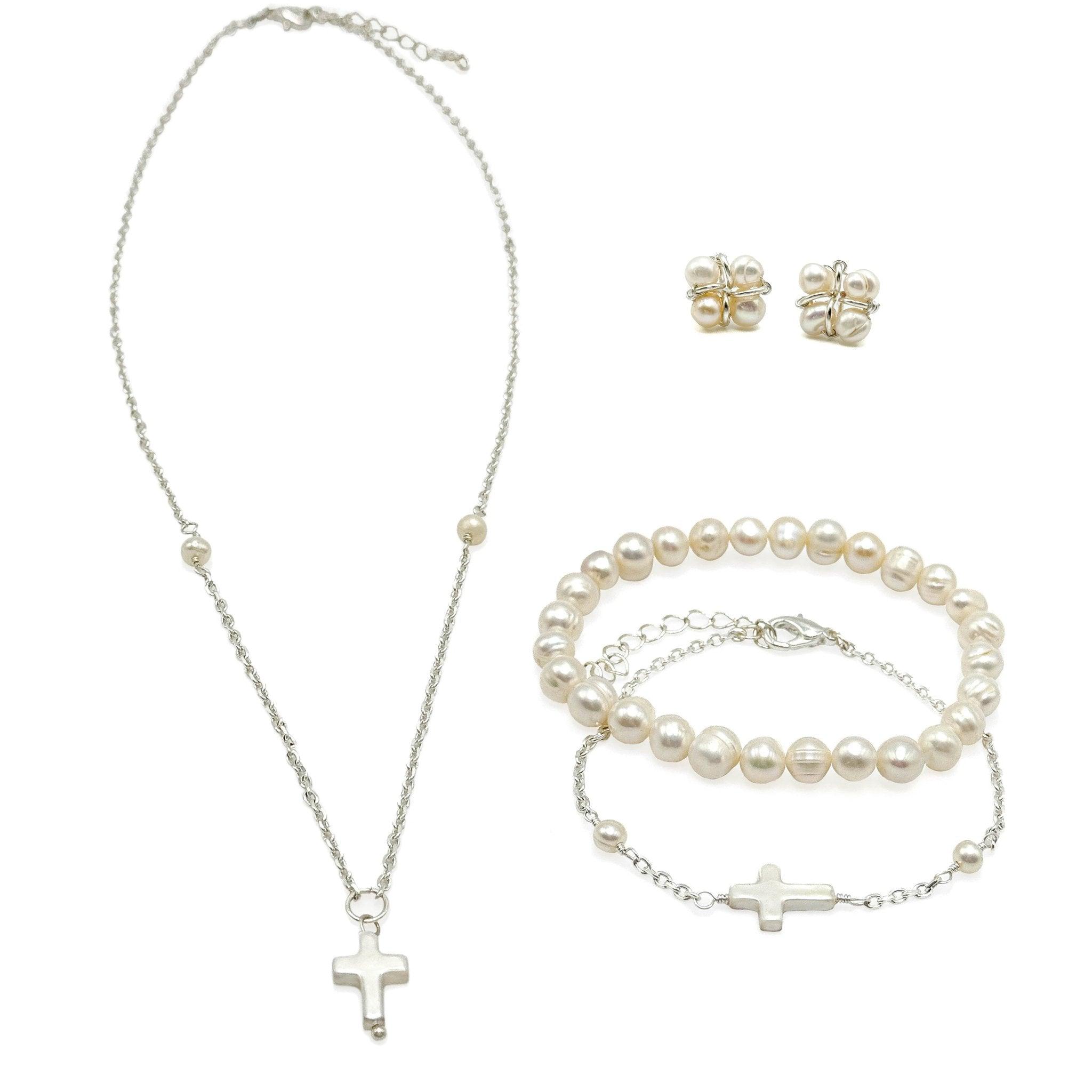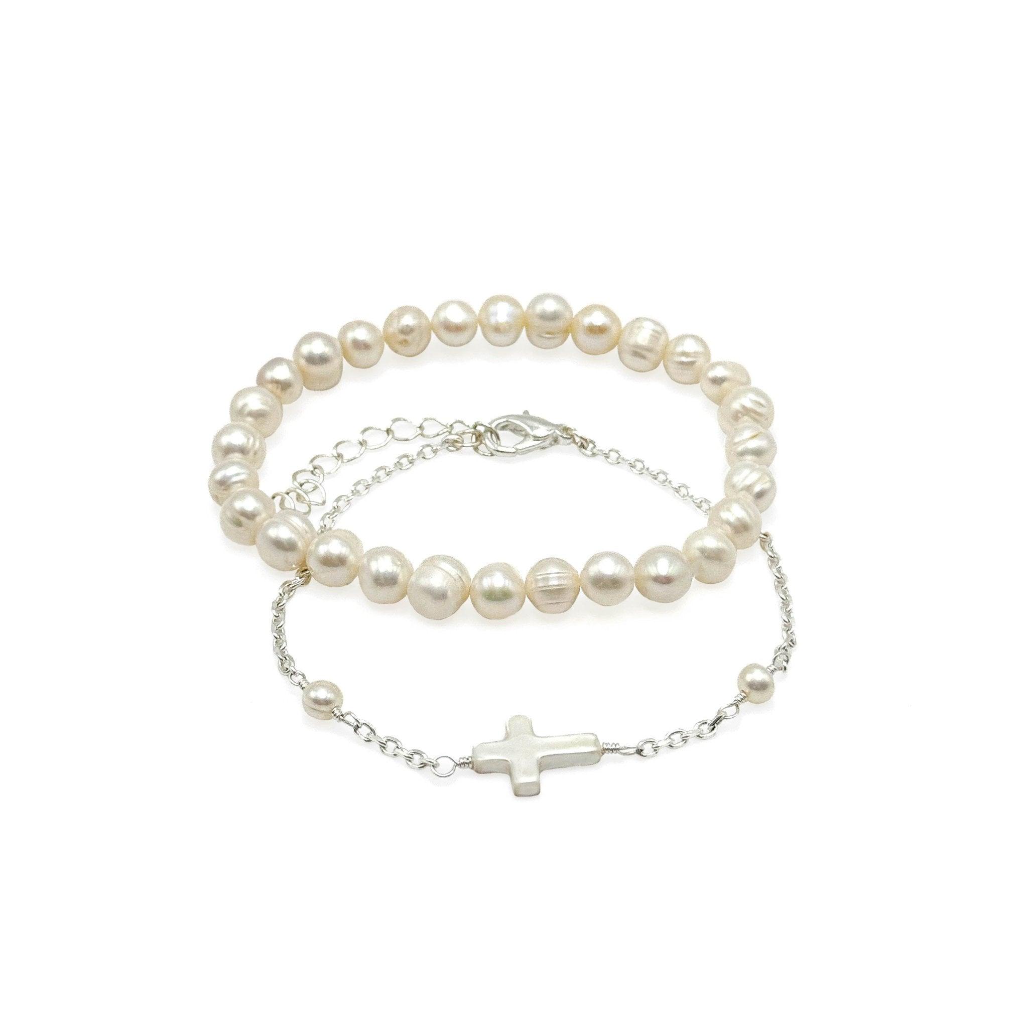 Whether you wear the single 8mm stretch bracelet, or the cable chain with a 5/8 inch shell cross surrounded by 2 6mm freshwater pearls.