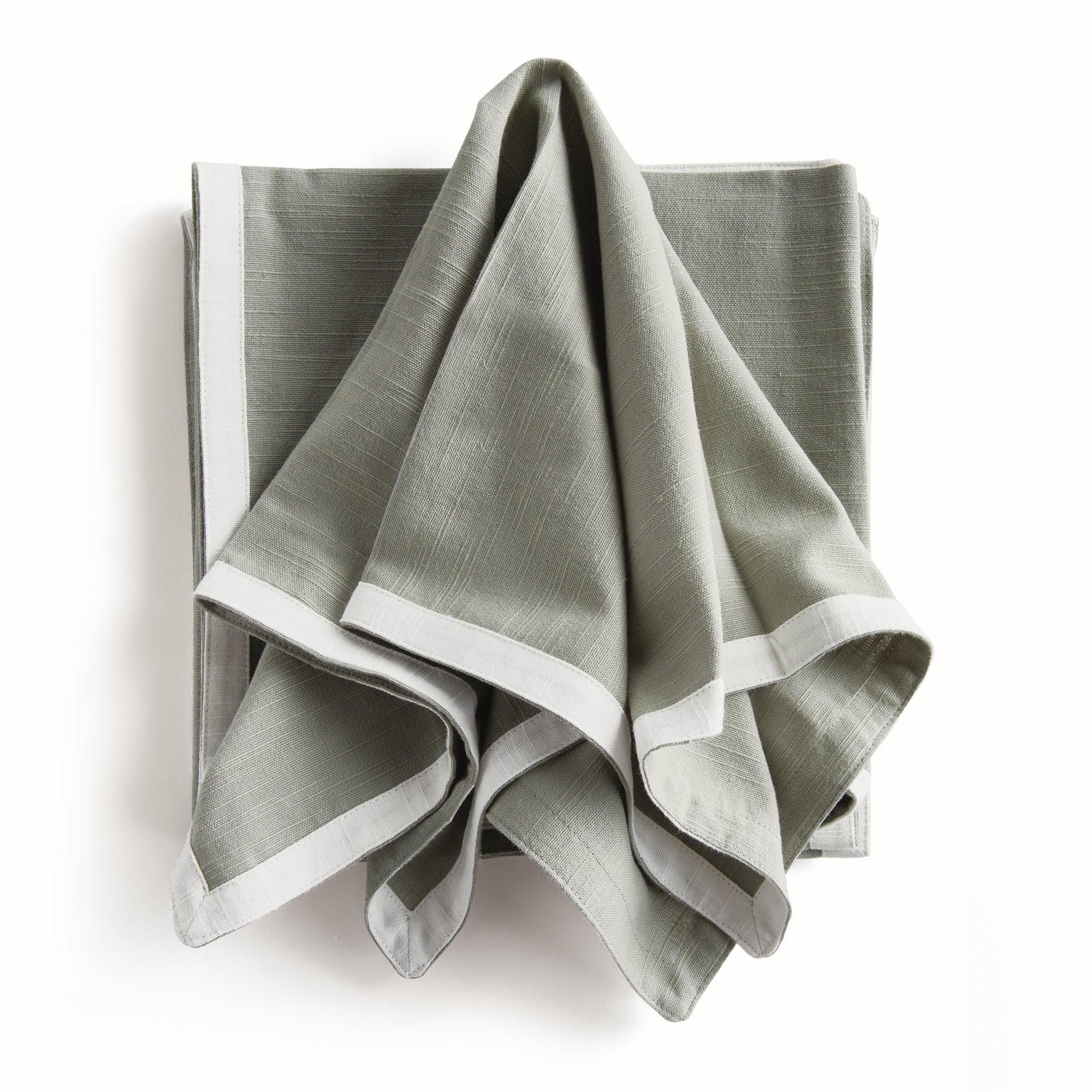 Bring a touch of softness to the table with this set of four 100% woven cotton napkins. Beautiful in tone and texture, the white & green combination is made to add a verdant touch to any tablescape.