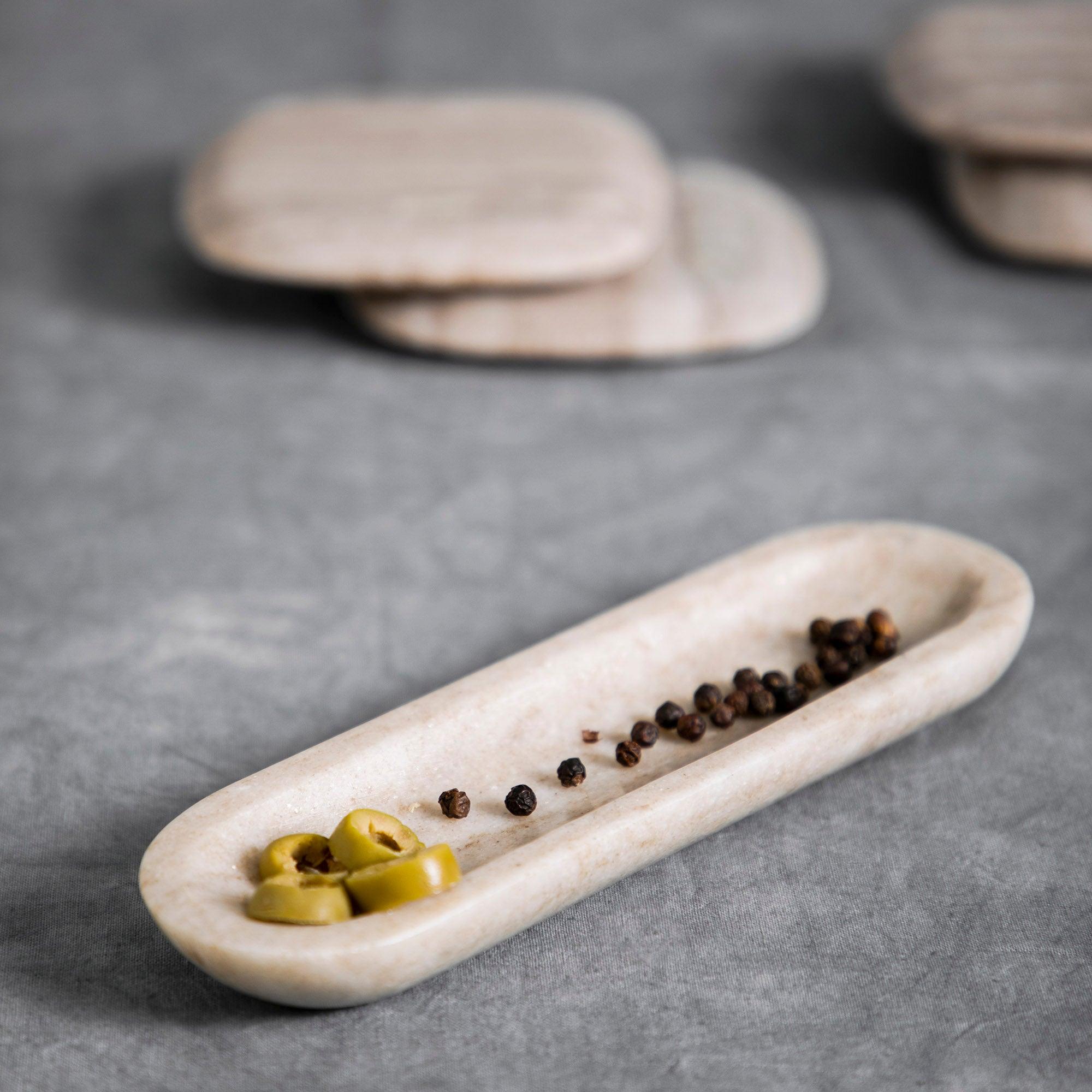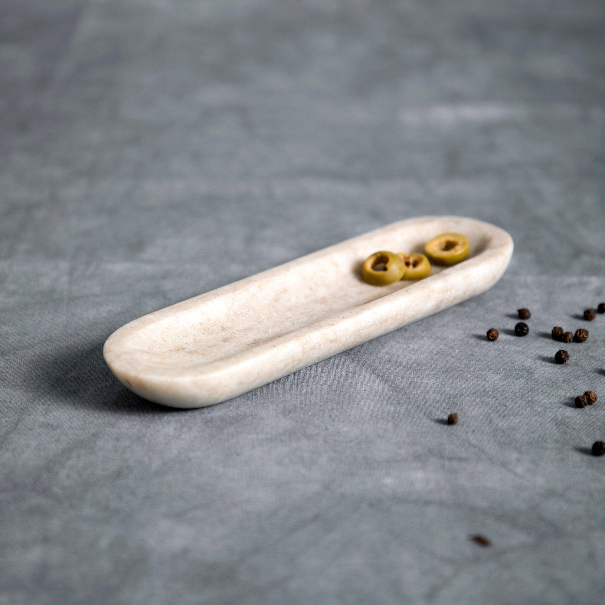 This delightful canoe-shaped vessel is carved, shaped and polished by hand from natural grey marble, ensuring no two will be exactly alike. Rounded ends and a shallow body make it a perfect serving solution for olives, nuts or antipasti, though it would also be right at home atop a dresser as a unique catchall.
