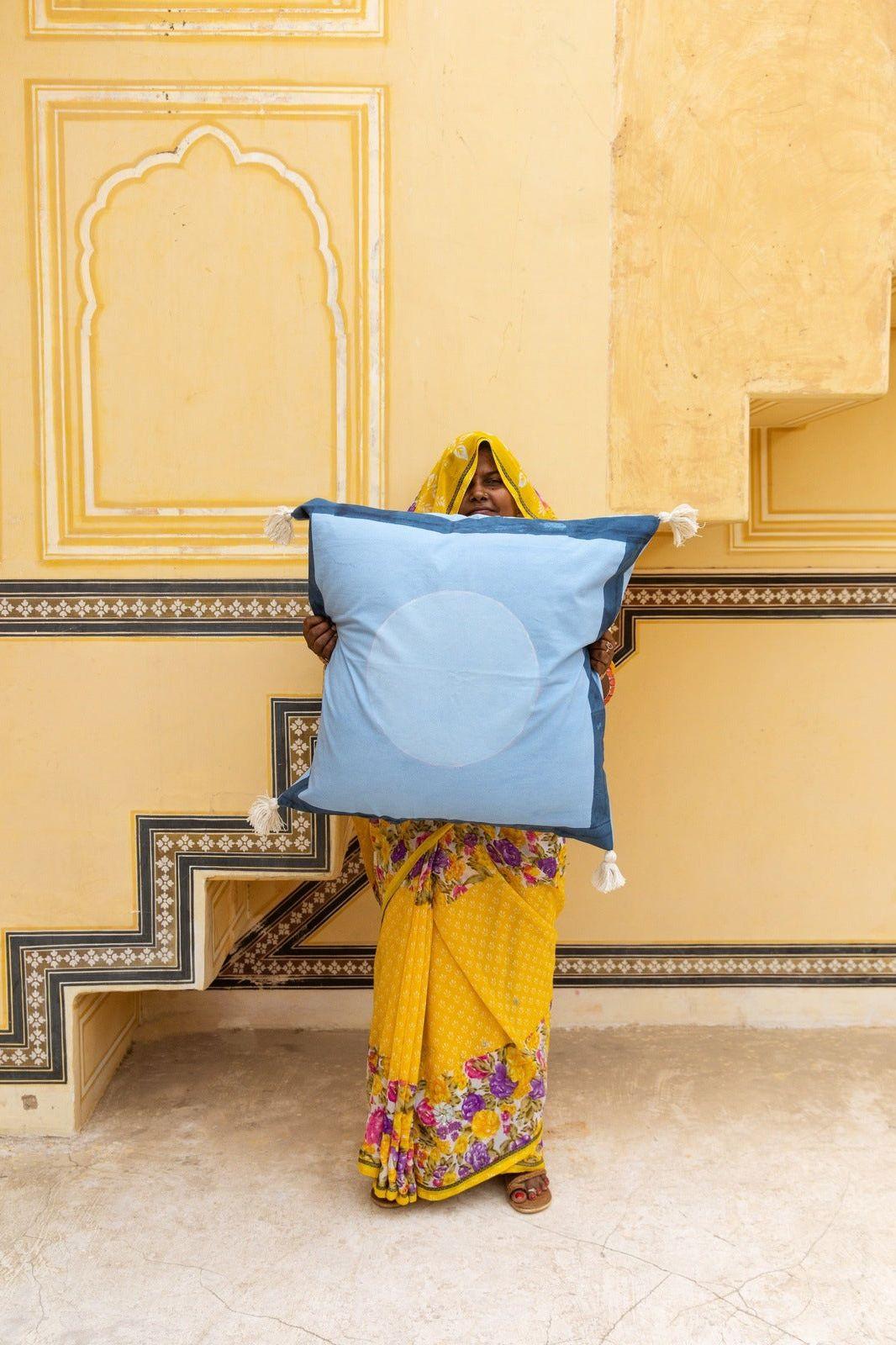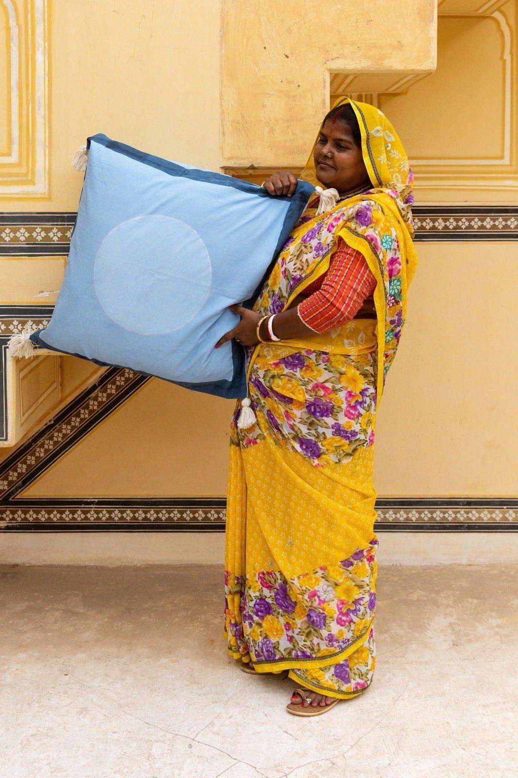 The design is hand-pressed onto each sham using hand-carved wooden blocks dipped in dyes.