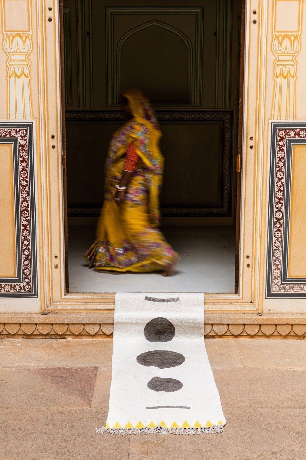 Each rug is handmade, requiring attention from 4 different types of artisans, including wood carvers, block printers, weavers, and dye specialists.