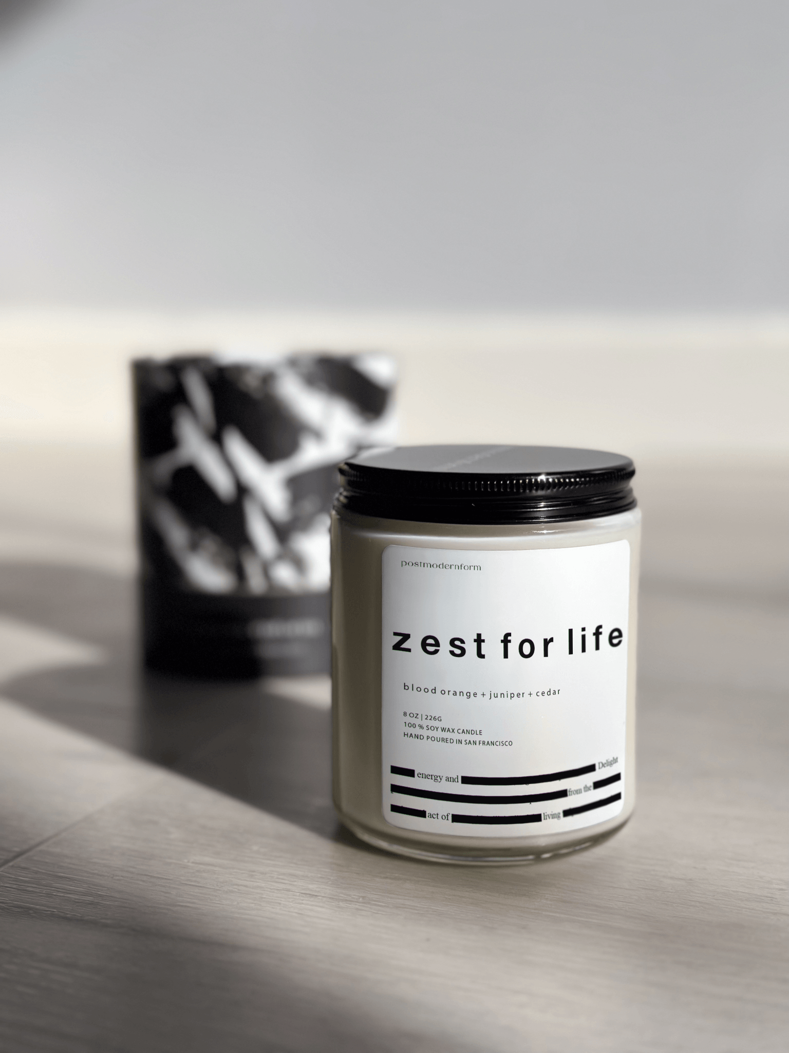 While a summertime favorite, 'zest for life' captures the effervescent spirit of living life to the fullest all year long. With its enticing blend of zesty citrus and subtle woodsy notes, it creates a delightful symphony that enlivens any space. Top notes of grapefruit and bergamot combine with blood orange and juniper mid notes, and a cedar base. Let 'zest for life' be your daily reminder to embrace the joyous journey of life.